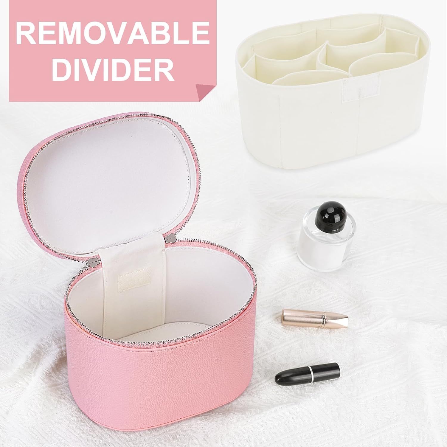 • Removable Divider: This makeup case is designed with removable divider to keep your cosmetics organized and accessible with ease.