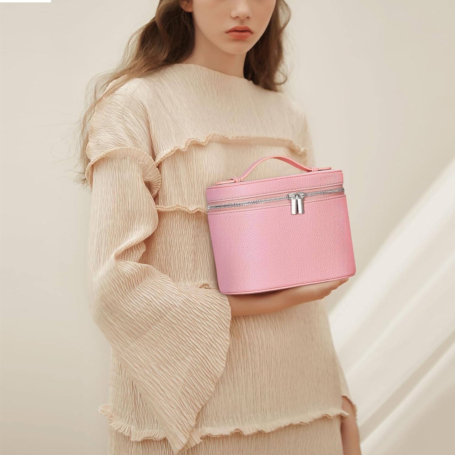• Makeup Travel Case: The makeup organizer bag is made of PU leather, which is good in texture and durable to use, the leather surface is easy to clean.