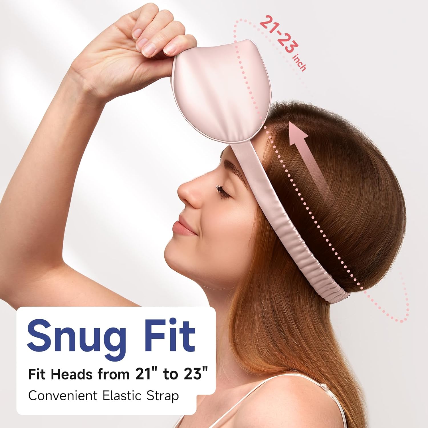 - Snug Fit: The elastic strap fits heads from 21" to 23". Unlike regular buckle straps that require tedious adjustments, our elastic strap slips on instantly for a perfect fit. Plus, the seamless elastic design eliminates irritating buckles while maintaining all-day comfort