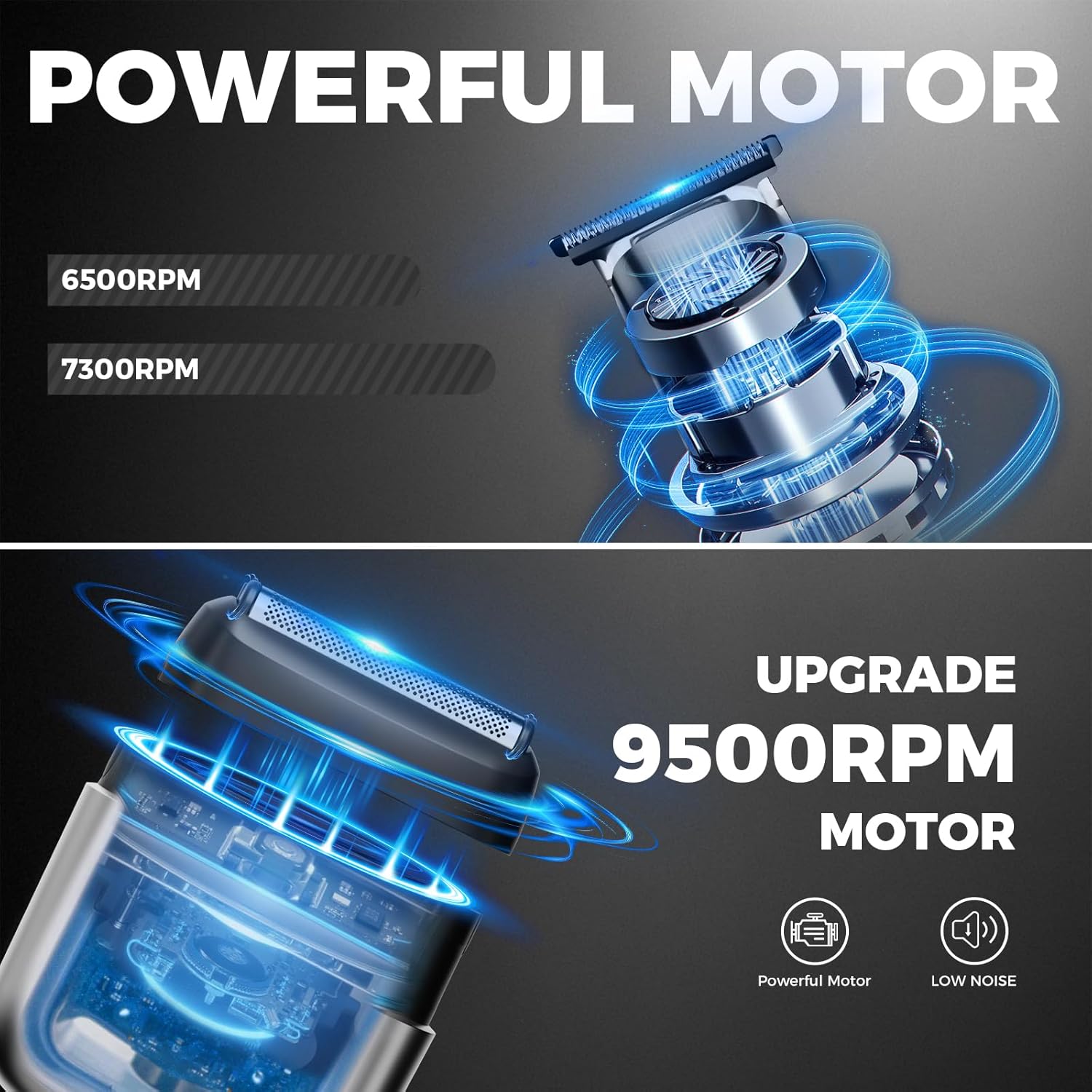 - Powerful Motor – No More Grooming Hassles: This beard trimmer & electric shaver with 9500PRM cuts through thick 3-day beards and dense chest hair like butter. Ultra-quiet, it glides through curly/wire-like hair without tugging—smooth, frustration-free grooming every time