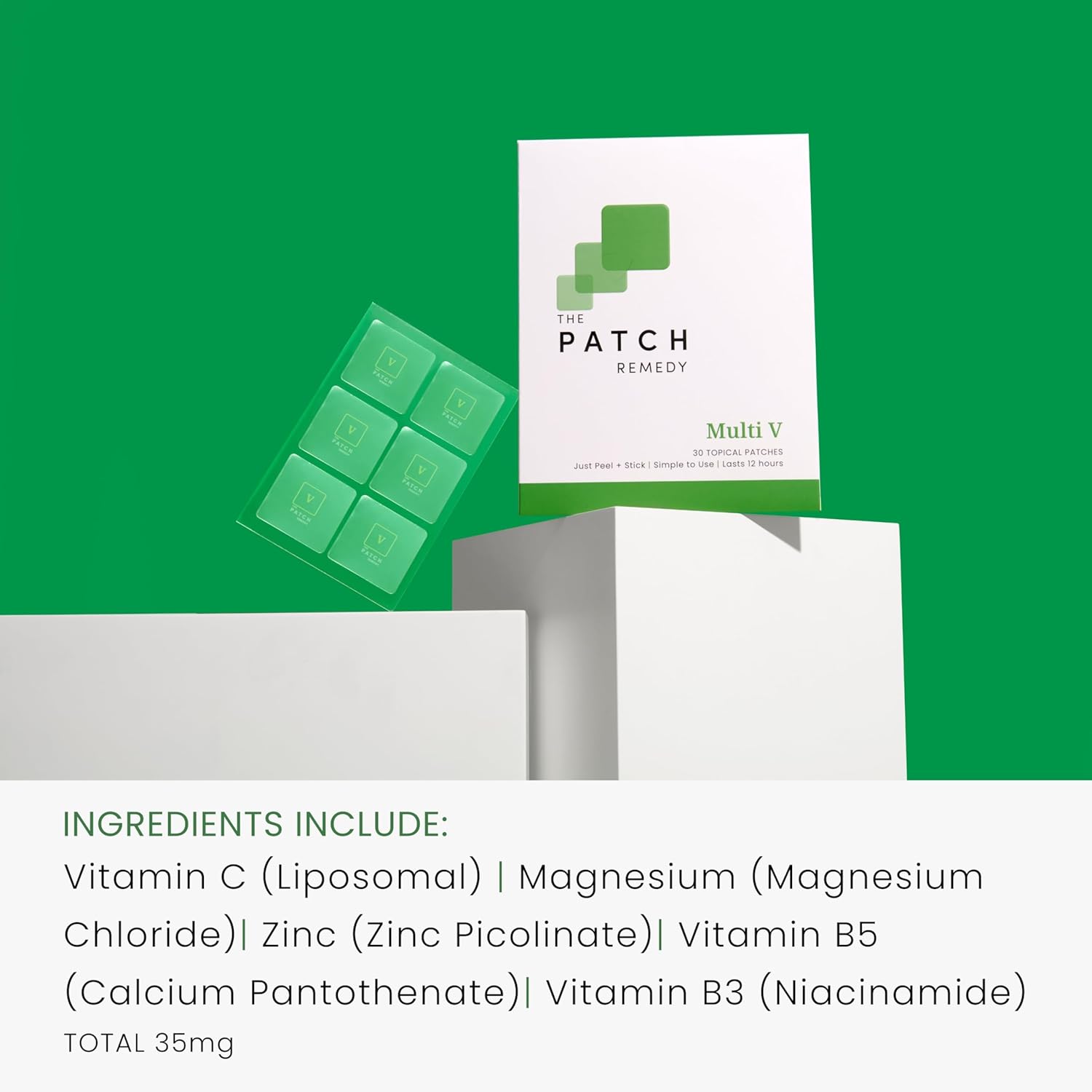 Multi V Patches - Topical Vitamin Plus Blend with D3, K2, Magnesium Chloride, Zinc, Liposomal C, Potassium, Iodide, Biotin Plus More | Nutrient Patch for Women & Men
