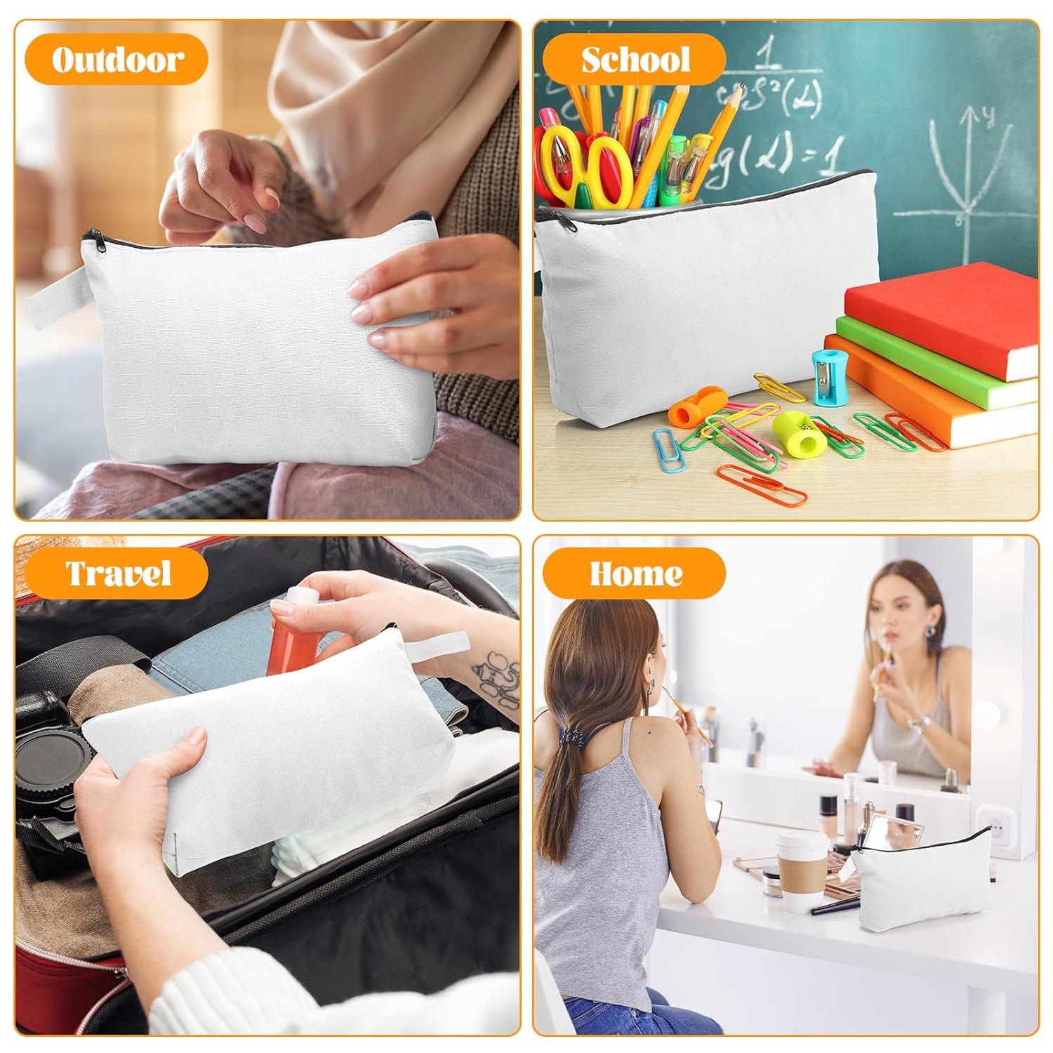 Saintrygo 30 Pcs Makeup Bag Travel Canvas Cosmetic Bag Bulk Multipurpose Small Makeup Pouch for Purse Portable Blank Zipper Toiletry Organizer DIY for Women Assorted Color(White,9.8 x 5 x 2 Inch)