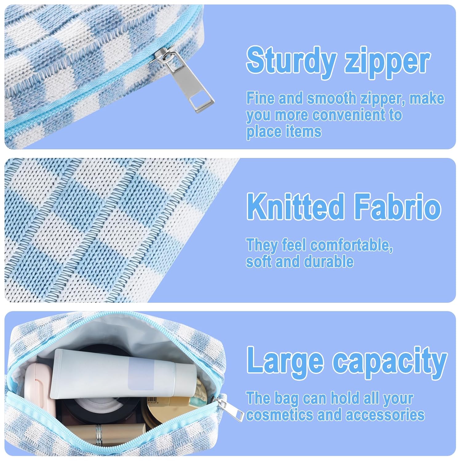 - LARGE CAPACITY AND PREMIUM MATERIAL: The cute makeup bag measure 7.1×4.3 inches, easy to carry. The checkered makeup bag is made of soft knitted fabric, easy to clean. The smaller ones can be used as pencil case or pencil pouch.This makeup travel bag can also hold small items such as makeup, skincare products, lipstick, eye shadow, eyebrow brush, etc. Makeup storage bag for women toiletries
