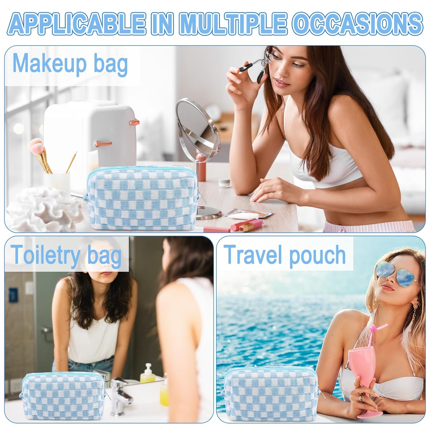 - CHECKERED TRAVEL POUCH: The checkered cosmetic bag can be used as a toiletry bag for women or pen bags. Daily makeup, skin care samples, mobile phone can be put in the bag, and can also be used as a purse. The checkered makeup pouch can be used while traveling, since zipper pouches are lightweight and don't take up a lot of space in your suitcase. Makeup pouches for organization