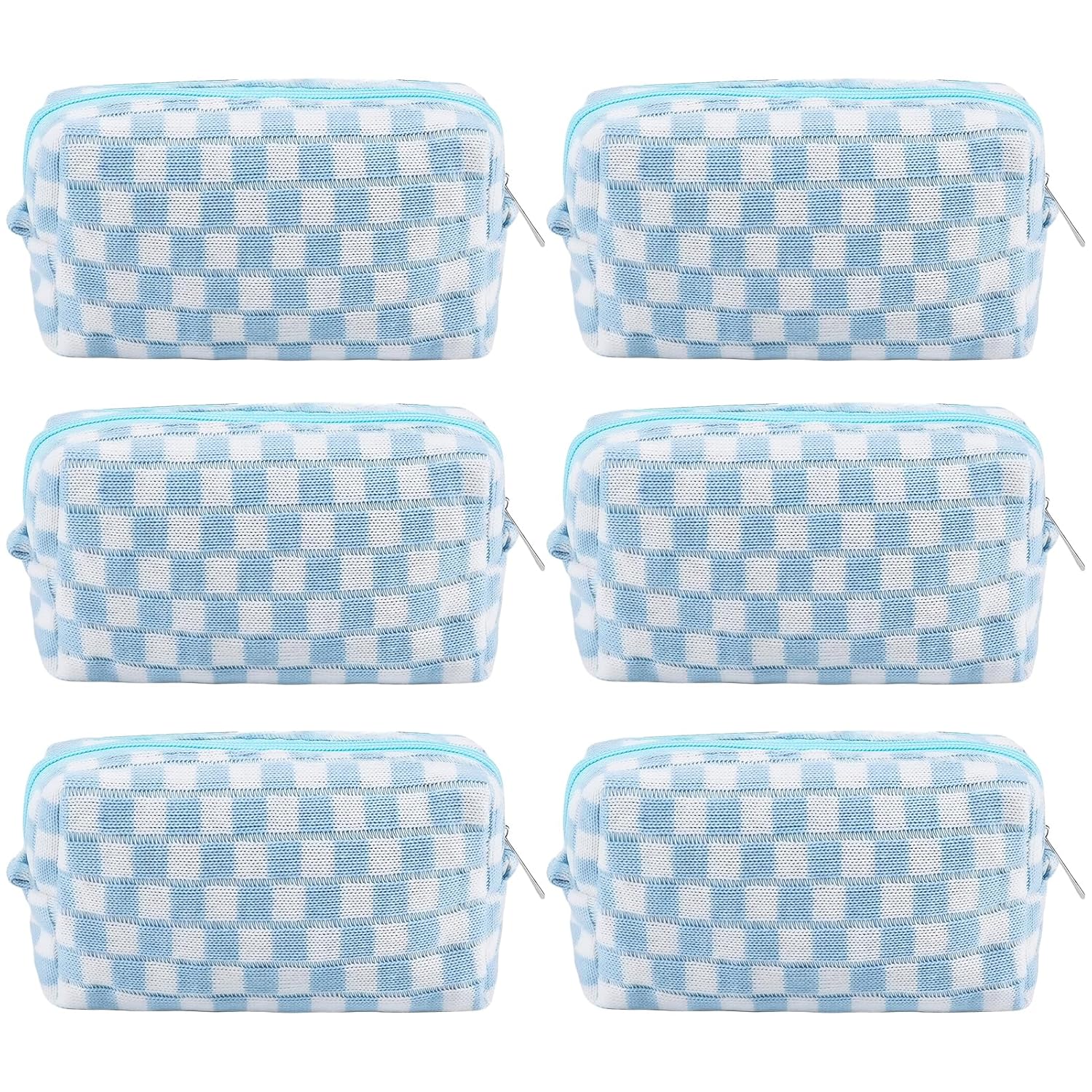 ZLFSRQ 6Pcs Checkered Pencil Case Cute Pencil Pouch for Teens Checkered Makeup Bag Blue Medium Travel Cosmetic Bag Makeup Pouch for Purse Aesthetic Trendy Zipper Toiletry Bags Organizer