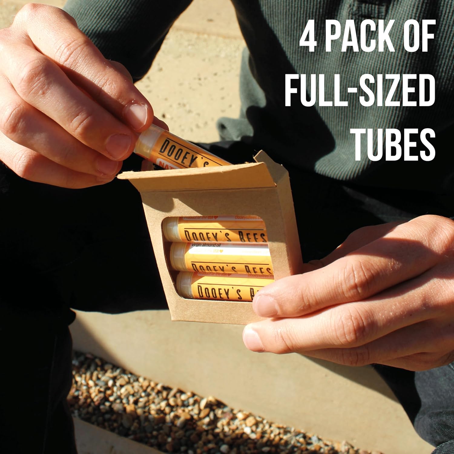 Dooey's Bees All Natural Handmade Beeswax Based 3 Ingredient Lip Balm, 4 Count (4 - Pack, Natural Original)