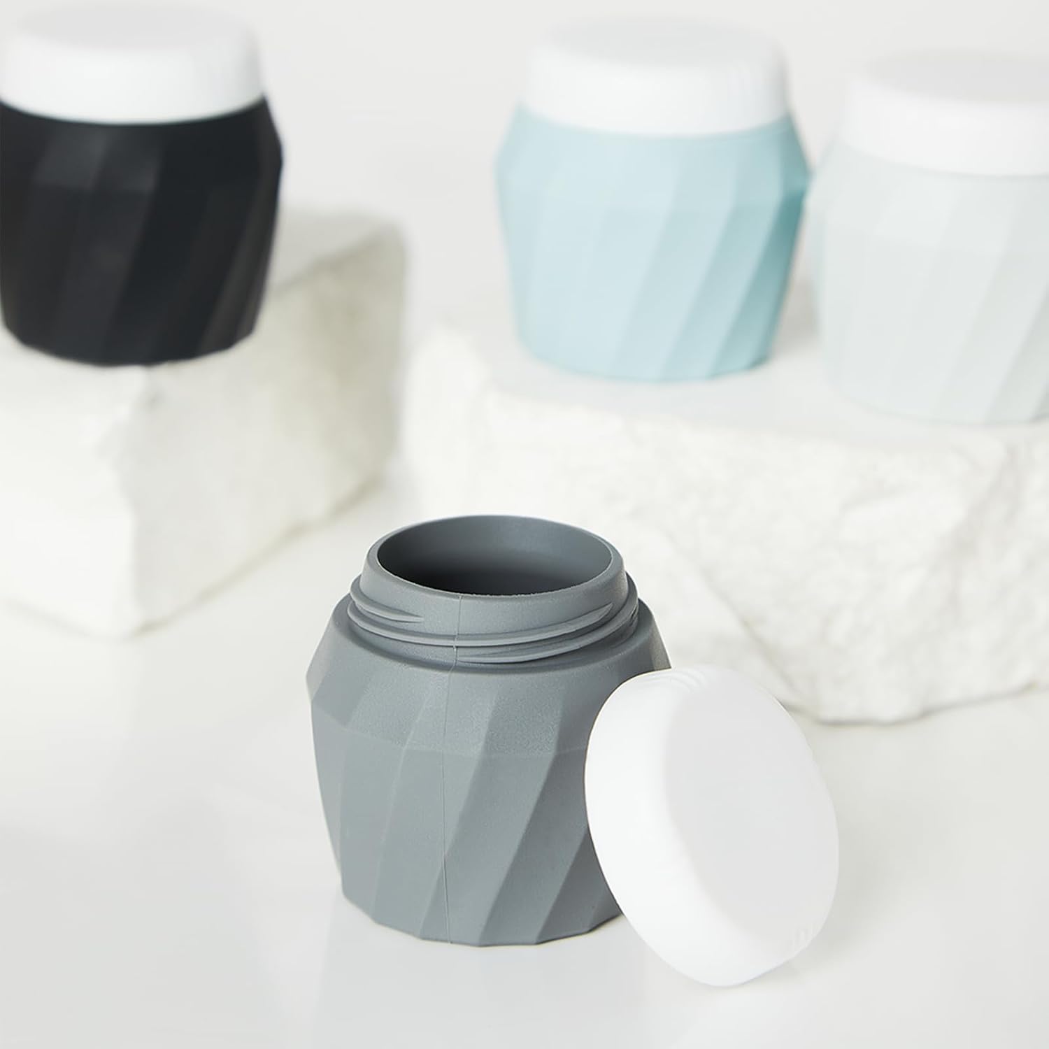 Travel Containers for Toiletries, Premium Silicone Cosmetic Cream Jars, TSA Approved Leak-Proof Refillable Travel Size Toiletries with Clear Bag for Cosmetic Face Body Cream (Gray, 1.7OZ)