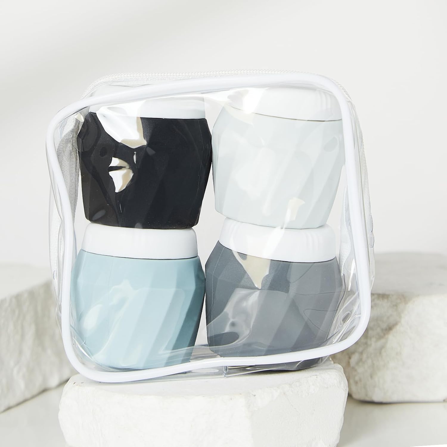 - 【TSA CARRY-ON APPROVED】4pcs Travel Containers for Toiletries, compact size fits in your pocket, handbag, backpack, and suitcase, ideal for travel, gym, camping, and the beach