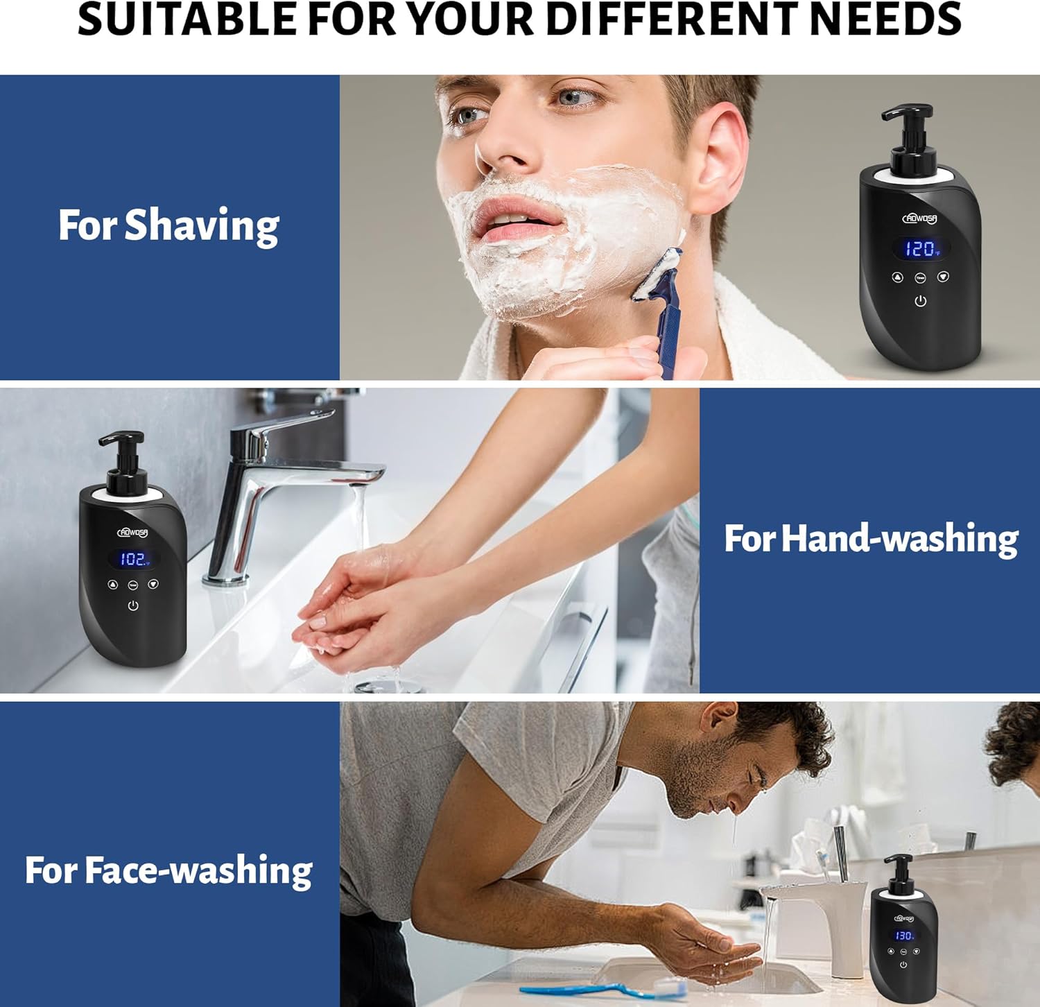 - 【Professional Hot Lather Machine】AOWOSA Hot Foamer gives you warm shaving cream lather. It produces a warm, rich, thick and dense lather in a short period of time, giving your facial skin an extremely comfortable and pampering shaving treatment. It has an elegant and compact design that makes it suitable for traveling. The bottle is removable for easy cleaning. Comes with two foam bottles for easy replacement.