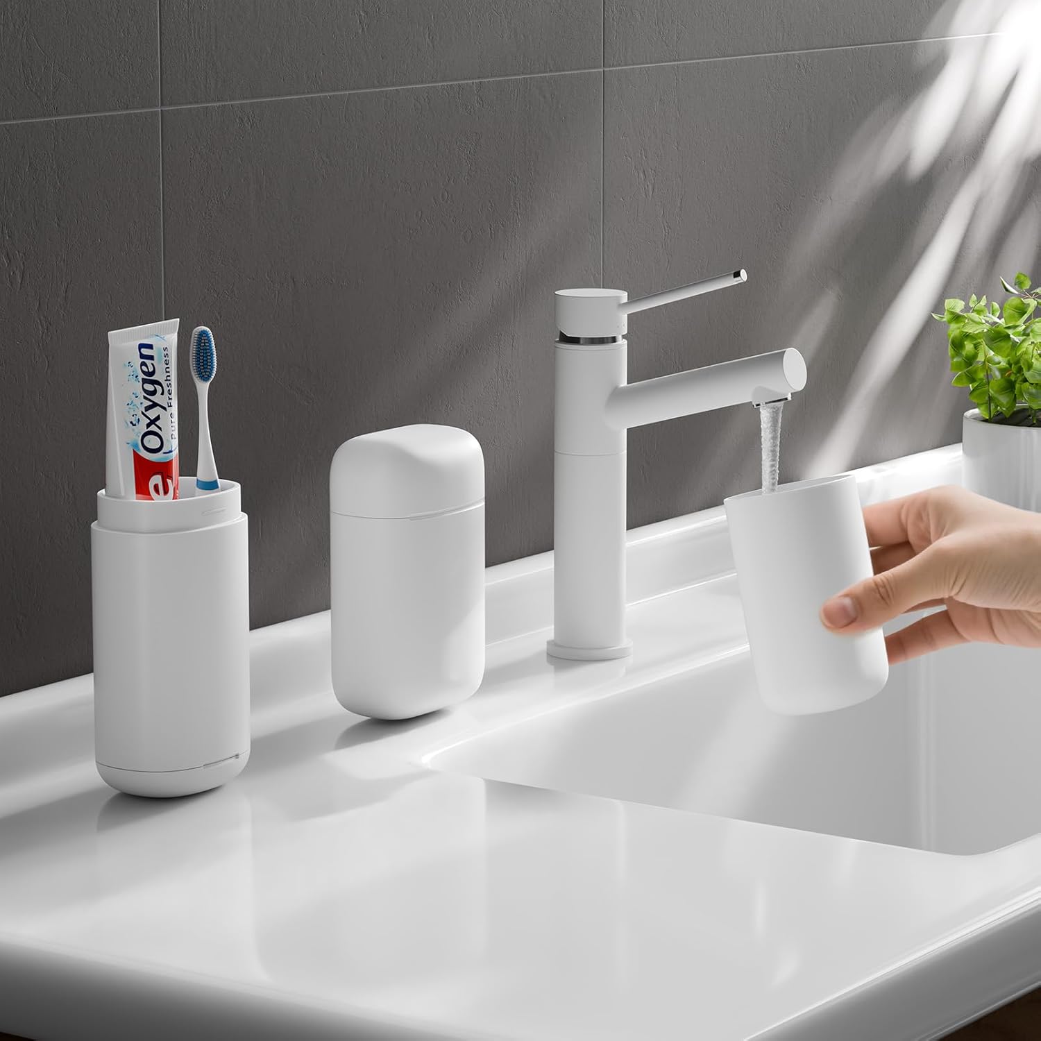 - Multi-Functional & Stylish: This travel soap toothbrush holder adopts a minimalist white design, and its round appearance makes it look modern and cute. This travel set provides the complement to your bathroom, travel, business trip, gym or camping