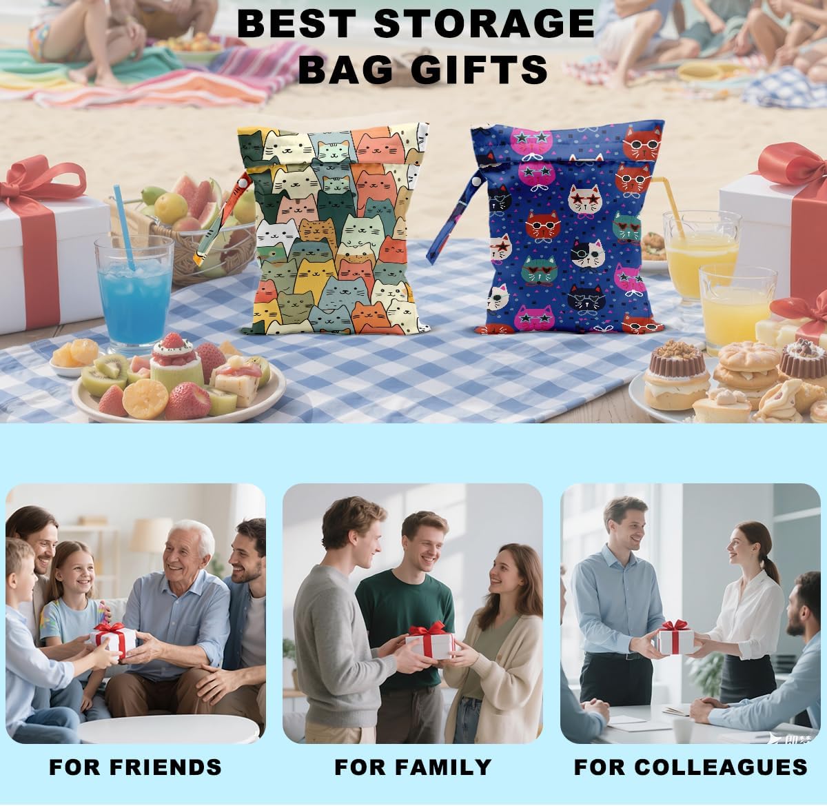 2Pcs Cat Wet Bag 12x10 Inch, Funny Cats Waterproof Reusable Wet Dry Bag, Washable Travel Laundry Bags for Swimsuit Pool Travel Beach Diapers Dirty Yoga Gym Clothes, Cat Gifts for Women Friend Family