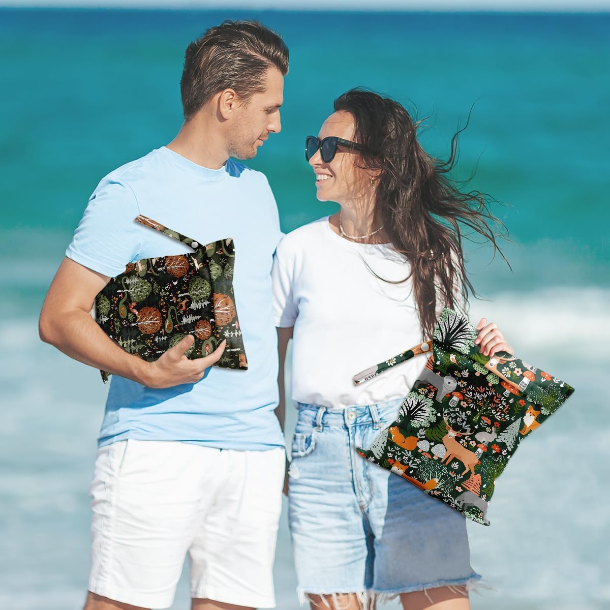 2Pcs Forest Animals Print Wet Bags, Wet Dry Bag Reusable for Swimsuit, Travel, Diapers, Pool, Beach, Dirty Yoga Gym Clothes, Toiletries, Makeup Bag, Zipper Pouch Waterproof Birthday Christmas Gifts