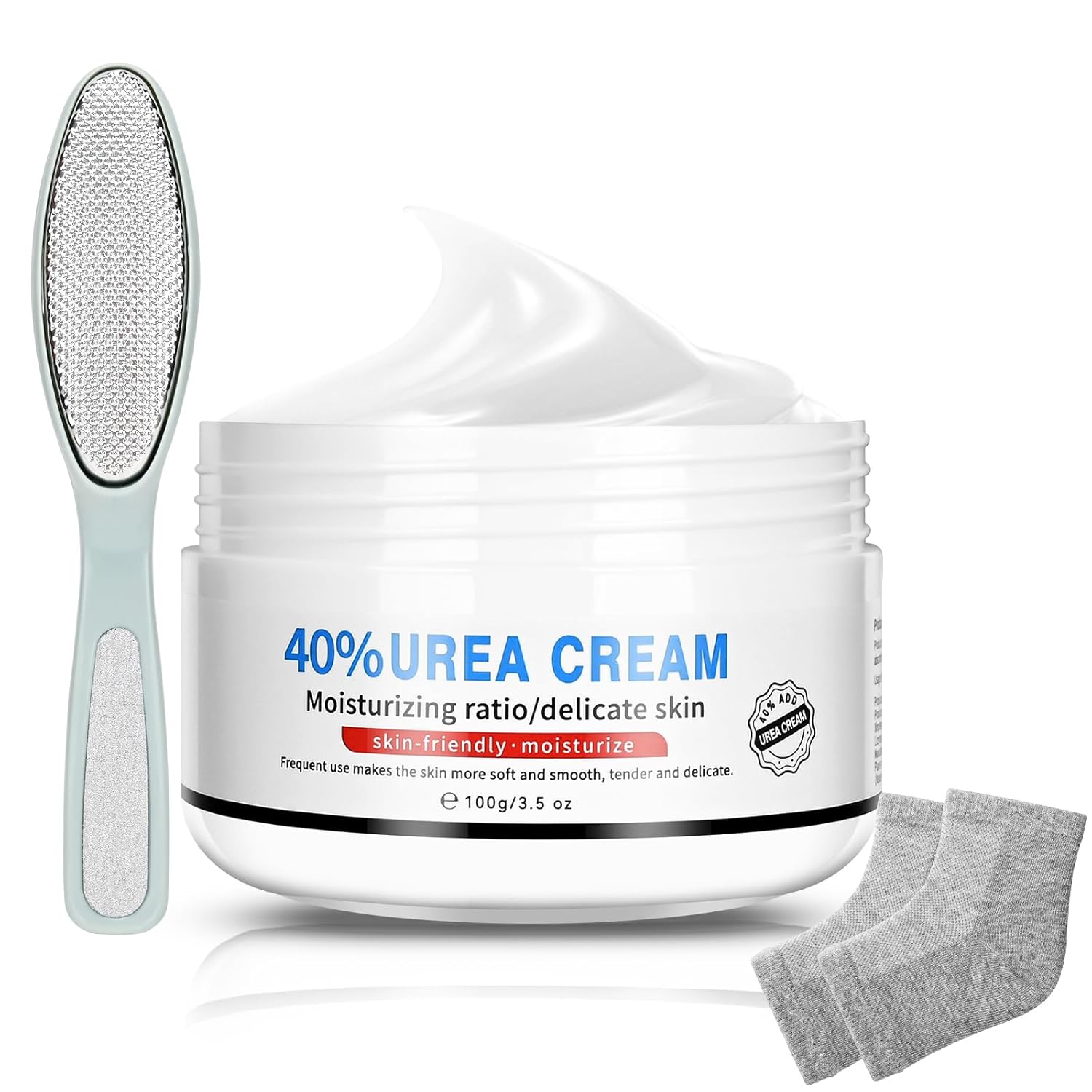 Urea Cream 40 Percent for Feet Maximum Strength, with Moisturizing Heel Socks for Cracked Heel,Foot Cream for Dry Cracked Heels and Feet,Urea Lotion, 3.5 OZ, Foot Files