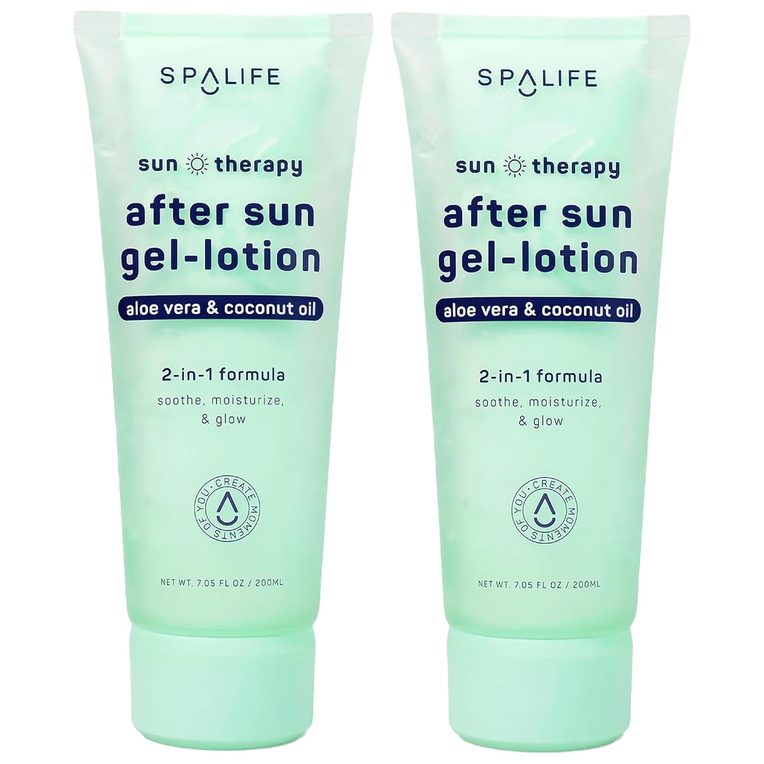 SpaLife After-Sun-Gel Lotion and Moisturizer for Sunburn Refelief - Two in One Formula, Infused with Aloe, Coconut Oil and Hyaluronic Acid - 2 Pack