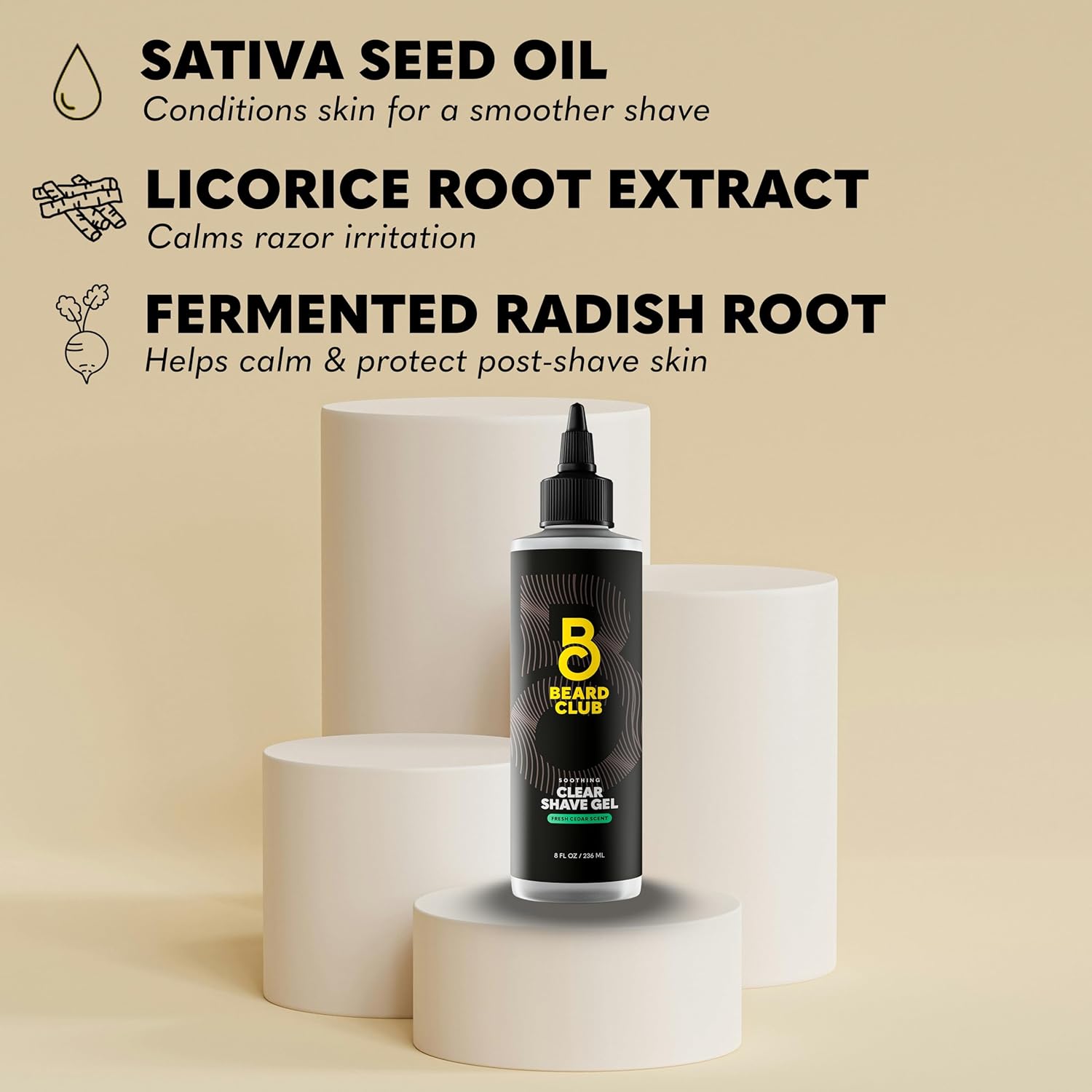 - Hydrating Men’s Shaving Gel – Sativa Seed & Licorice Root - This men’s shaving gel is enriched with skin-loving ingredients like Sativa Seed Oil, soothing Licorice Root, and Fermented Radish Root to moisturize and calm