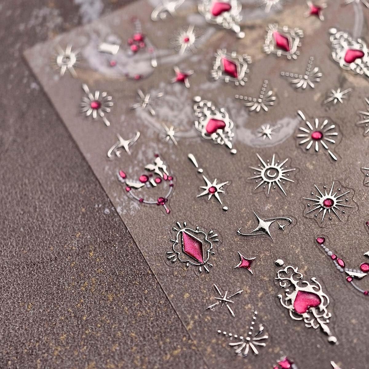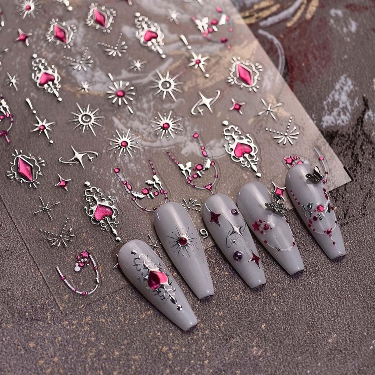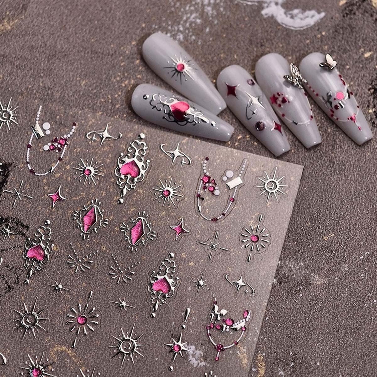5D Embossed Heart Nail Stickers Decals 3D Self-Adhesive Star Nail Art Stickers Sliver Nails Art Decals Jelly Design Nail Supplies Cute Nails Accessories for Women DIY Manicure Decoration 1Sheet