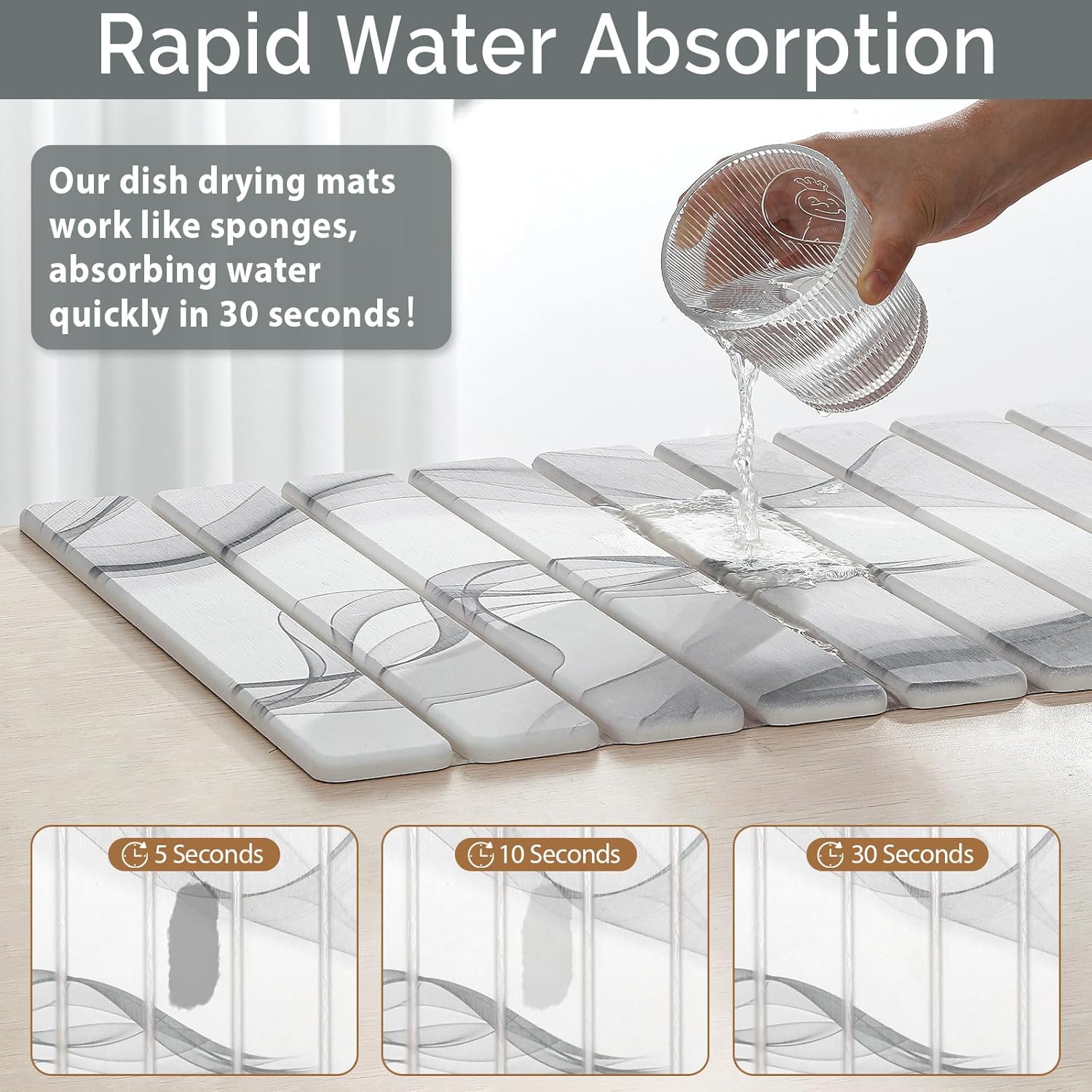 - 【Food-Grade material & 30s fast dry】Made from premium diatomaceous earth and PVC, this stone drying mat for kitchen counters is carefully tested for security, even when in contact with food, and is completely safe. Its highly absorbent material quickly soaks up water, keeping your countertops dry and devoid o dampness.