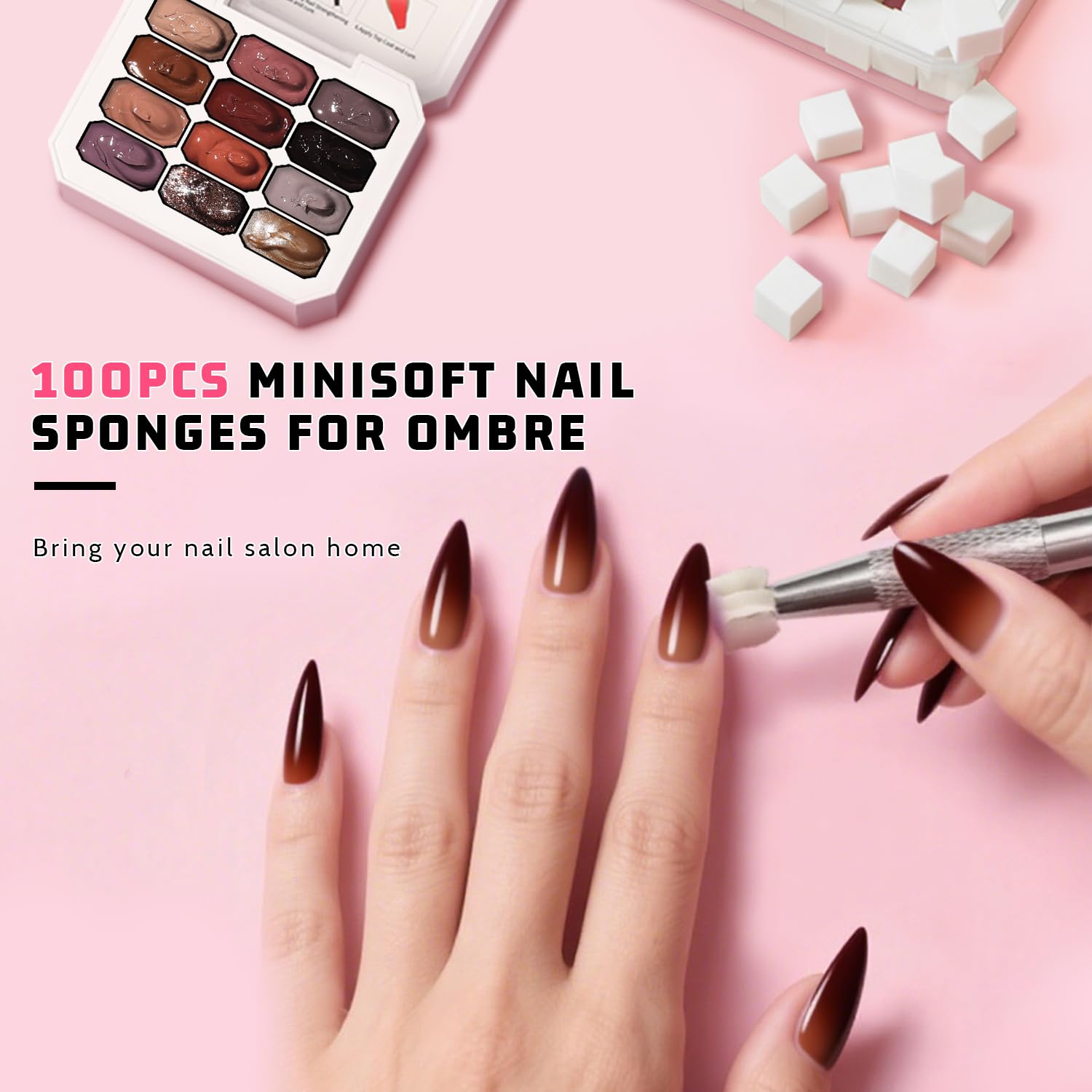 - 【WARM TIPS:】The solid nail gel need to be cured under UV/LED light. For a seamless gradient, lightly dab the sponge onto your nails. Avoid pressing too hard, as this can create an unnatural look.