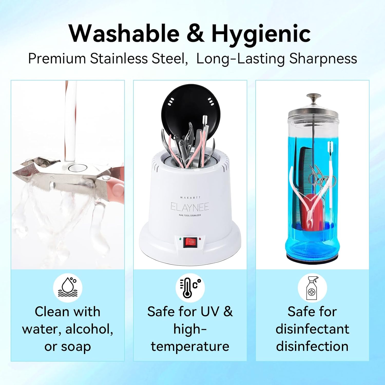 - Reusable & Easy to Clean: The cuticle kit is made of high-quality stainless steel that resists rust and dulling. Wash with water or alcohol and disinfect using UV or heat sterilization