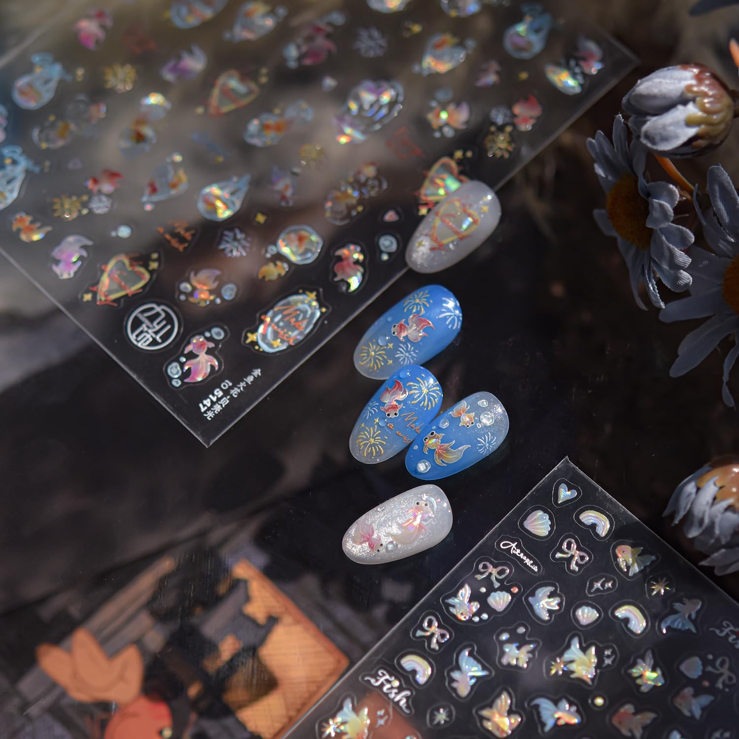 - Easy to Use: Sparkly koi fish nail art sticker is easy for you to apply; You can apply nail polish first, and then stick the nail sticker to your nails, last seal them with clean nail polish; Please note that the nail polish is not included in the package.