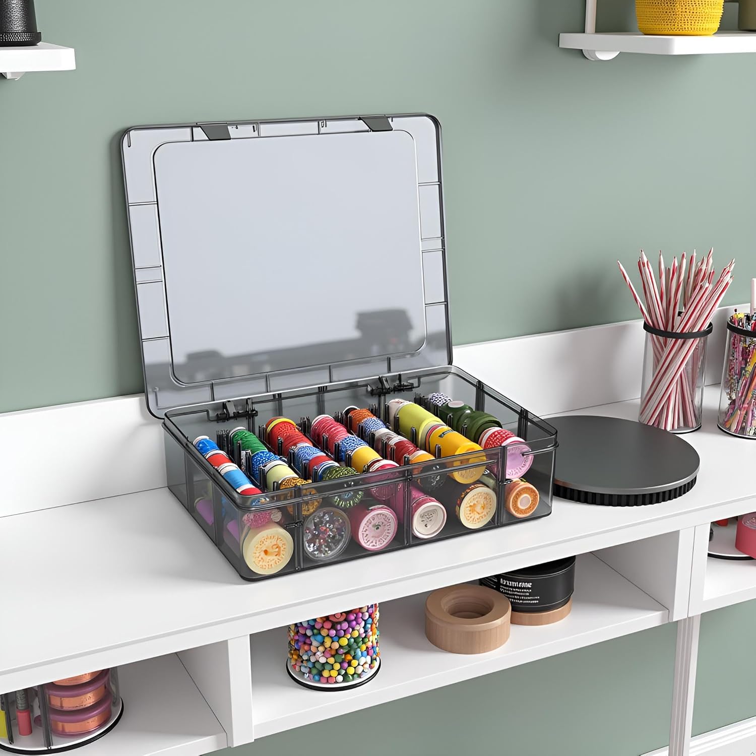 - Our upgraded design features thick and sturdy grids with snap-shut lips and a reasonable hinge that ensures maximum durability. The inverted triangle design grip also makes for easy insertion.From small electronic parts ,beads organizer and jewelry to fishing gear and small tool kits, our versatile storage box is perfect for storing it all. Keep your items well organized and easy to access with our 18-grid clear plastic storage box.