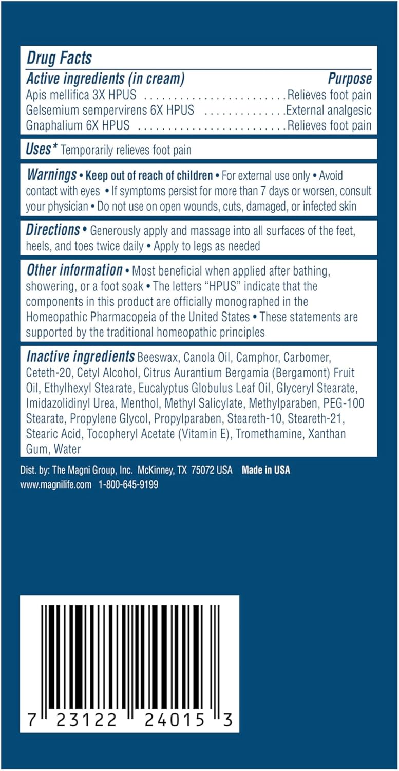 MagniLife Pain Relieving Foot Cream, All-Natural Moisturizing Foot Pain Relief with Beeswax and Eucalyptus to Soothe Soreness, Burning, Tingling, and Sensitivity (2 Pack-4oz Jars)