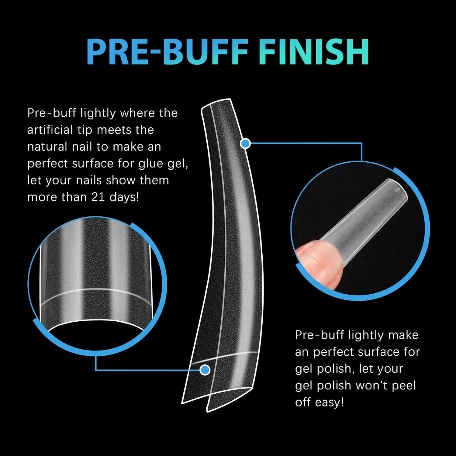 - High Quality ABS Material: INFELING clear coffin nails tips are made with high quality ABS material, which is thick and sturdy enough to last about 2-3 weeks. What's more, they are nontoxic, tasteless and no harm to nails, providing you a safe and comfortable nail doing experience
