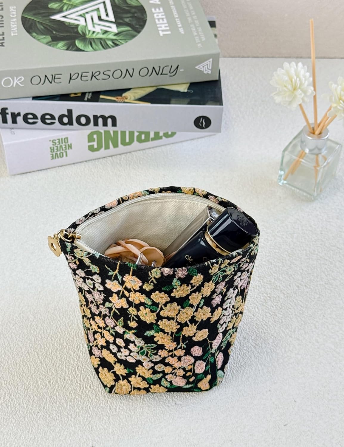 • Compact Design Makeup Bag for Purse: There are 2 makeup bags for women in set, 1 large zipper pouch and 1 small floral make up bag, making them perfect for organizing makeup, cosmetics, nail files, eyeliner, lipstick, or pencils