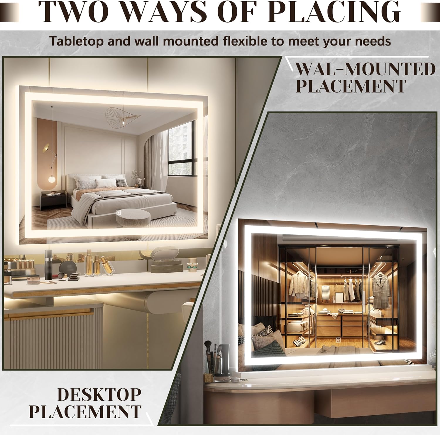 - 【Extra Large & Space - Saving Design】 Our LED vanity mirror has a 30% larger viewing area than standard mirrors, allowing you to see full-body outfits and makeup details at a glance. The 31" x 22" size also features a space - saving dual - installation design. It comes with a detachable base, so you can use it on the desktop or mount it on the wall as needed.