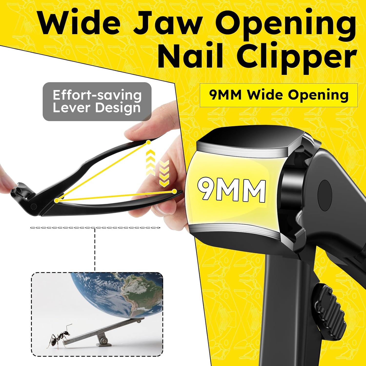 - 【9MM Wide Jaw Opening for Thick Nails】 These heavy duty toenail clippers for thick toenails open up to 9MM, about 4 times wider than standard models. Designed as large nail clippers for thick toenails, they cut through thick, hard, or ingrown toenails effortlessly, making them ideal toe nail clippers for thick nails for seniors, men, and even professional toenail clippers.