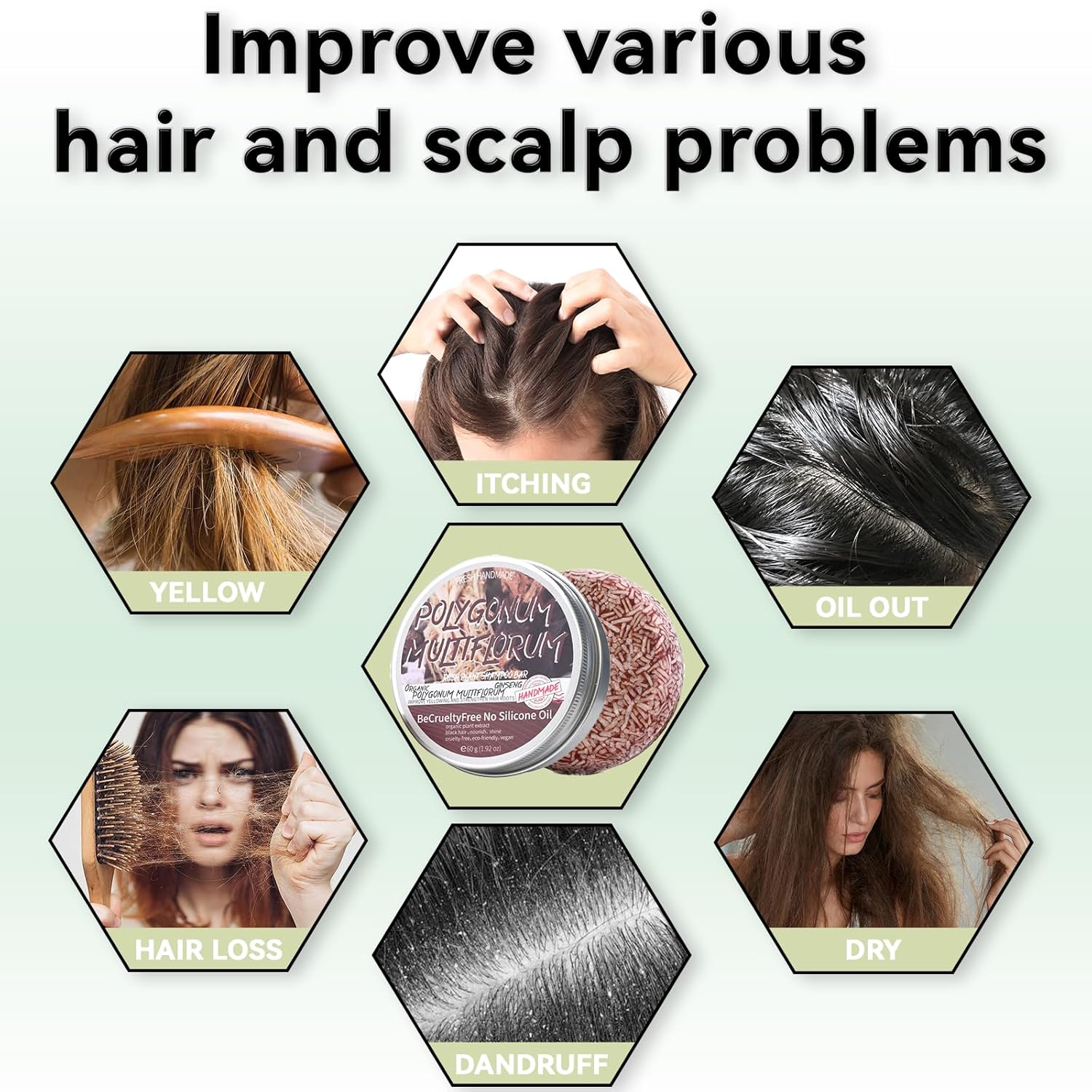 - 【Safe Ingredients】Shouwu Blackening Shampoo Bar uses pure natural ingredients, including shouwu blackening extract, shea butter, olive oil, coconut oil, and other ingredients. It has a mild effect and does not hurt the scalp. Therefore, you can use it with confidence even if you have sensitive skin.