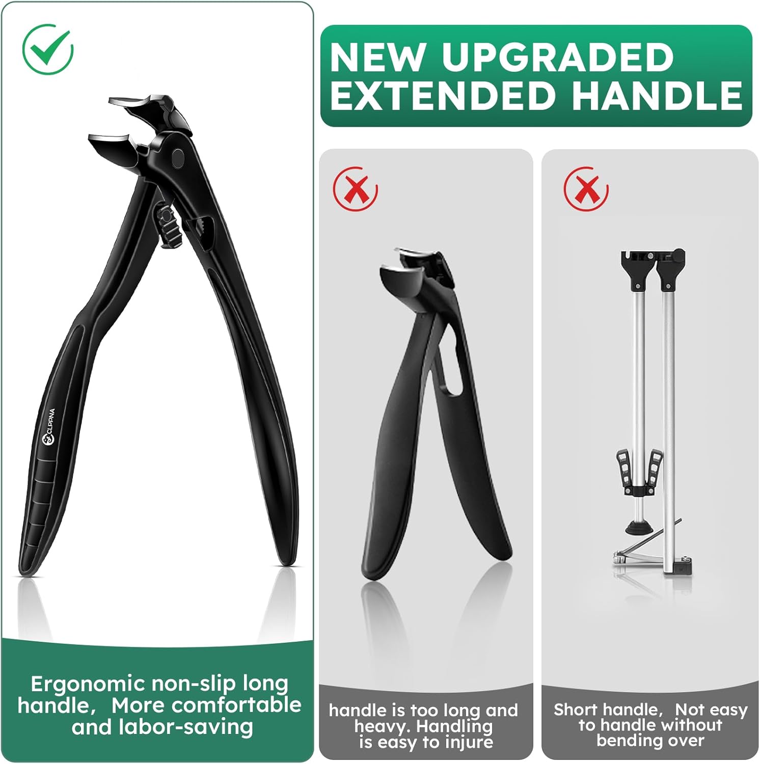 Toenail Clippers for Seniors, CLPPNA Upgraded Long Handle Angled Head Toenail Clippers for Thick Toenails and Fingernails, Wide Jaw Opening Toenail Clipper with Catcher for Men and Women - Black