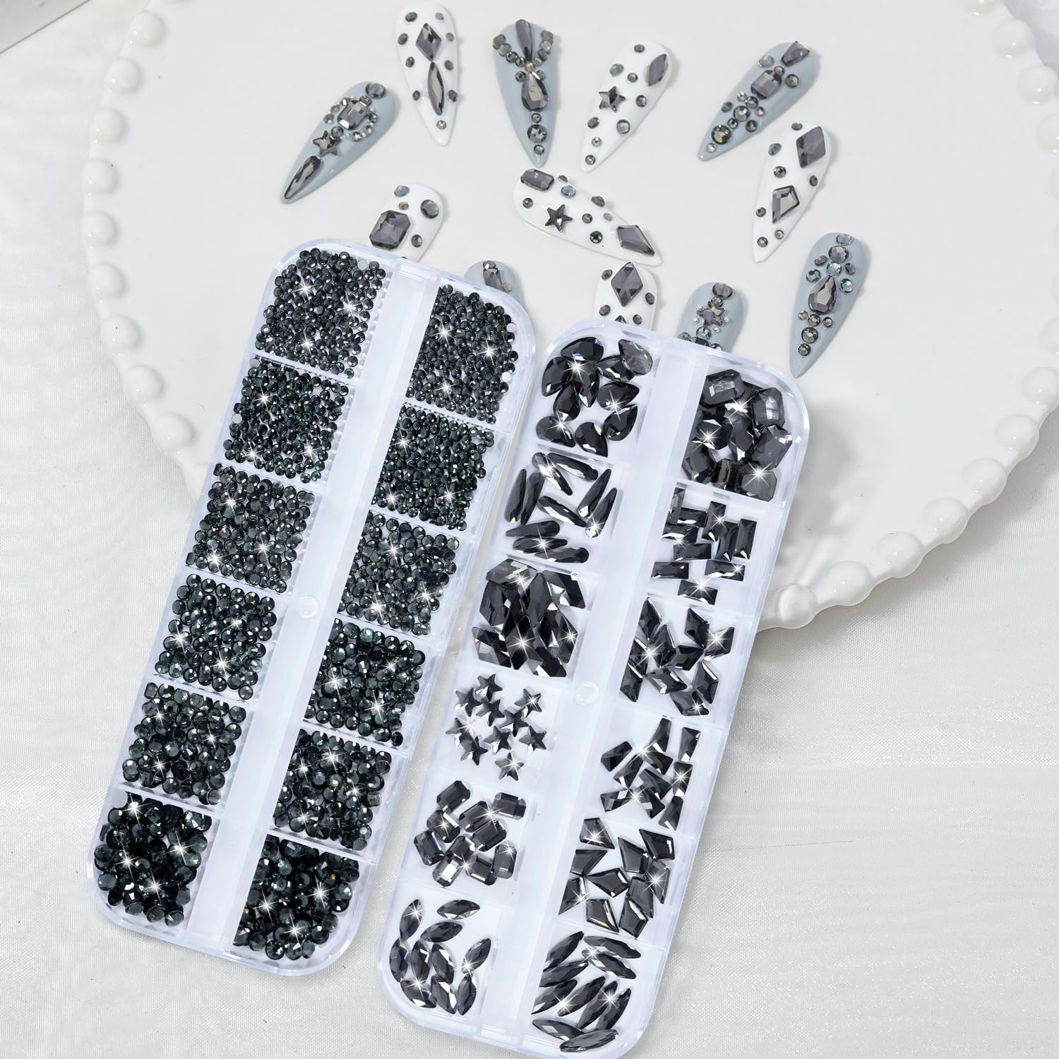 - ★Multi shaped - Transparent gray nail rhinestones Is made of High-quality glass and has delicate and exquisite Shine is very hard and not easily break.superior to resin and acrylic, and can ensure the Long-lasting effect of your manicure.the crystal transparent gray coating Is bonded firmly to the outer surface of each crystal bead with durable sparkling and brightness crystal rhinestones gems.