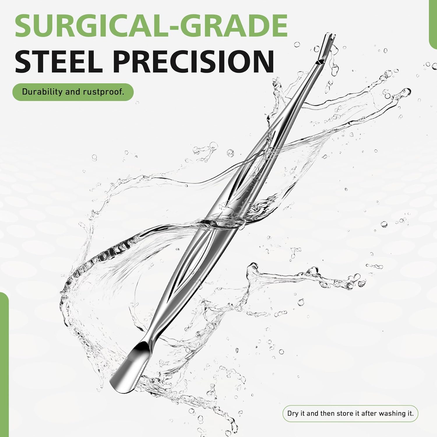 - Surgical-Grade Steel Strength: Forged from 100% rust-proof, ultra-sharp stainless steel, this cuticle trimmer pusher tool slices precisely through dead skin without snagging or pain. Built to last a lifetime – no bends, no breaks, just flawless results.