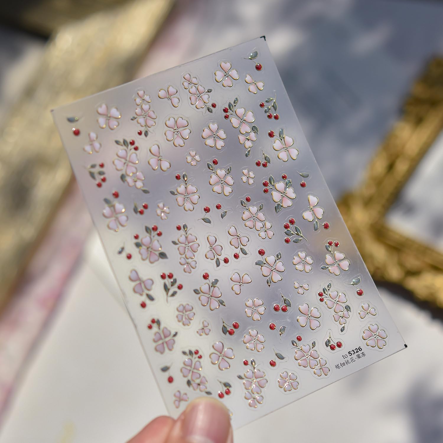 Flower Nail Stickers Pink Nail Art Stickers Jerry Nail Decals with Red Design Floral Nails Art Decals 5D Embossed Self Adhesive Nails Charms for Women Girls Manicure DIY Decoration Accessories