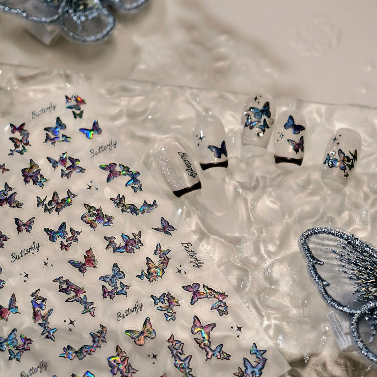 Butterfly Nail Art Stickers Holographic Nails Decals 5D Embossed Nail Sticker for Nails Art Dark Nail Stickers with Design for Women Girls Kid Manicure Supply Decoration Accessories