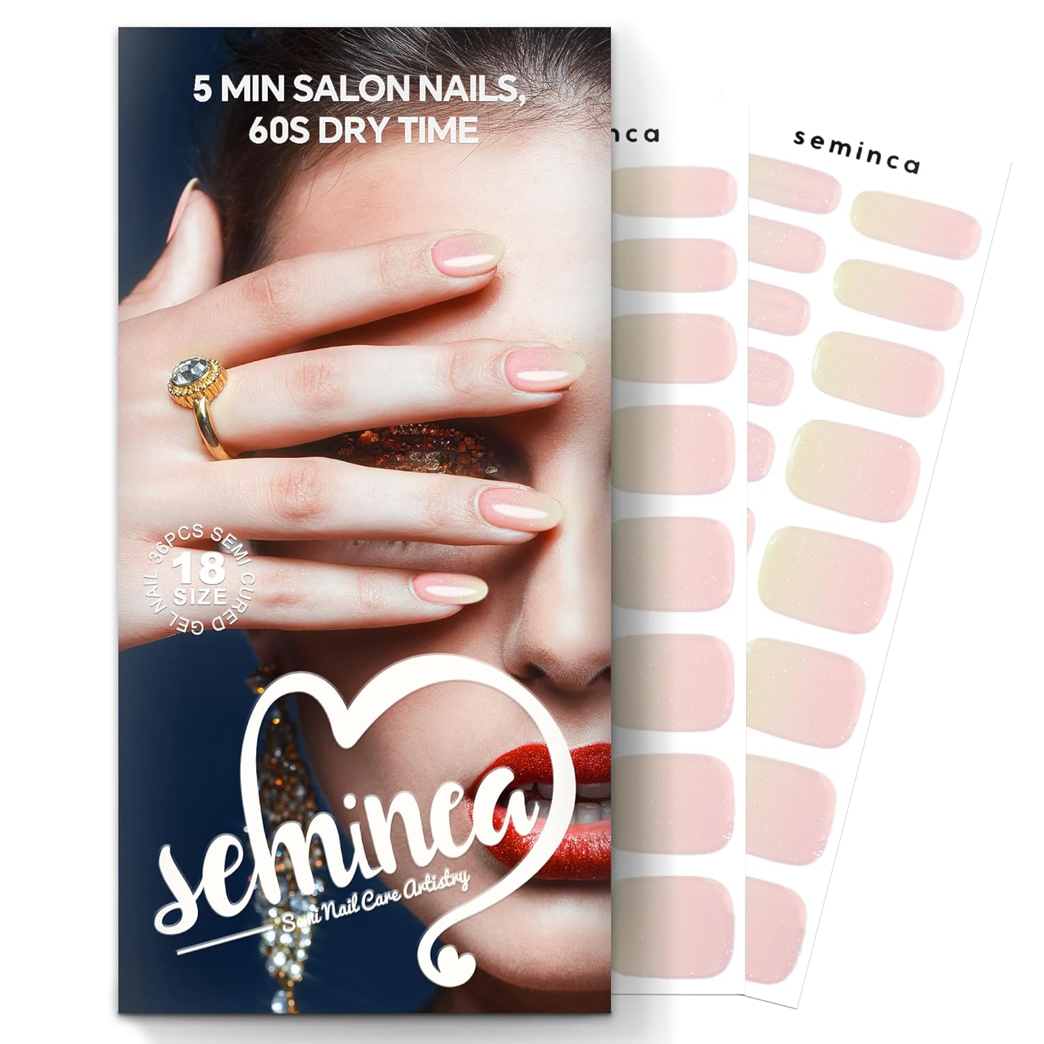 Semi Cured Gel Nail Strips-Fall winter nail stickers Glossy finish cozy season colors sweater weather designs for holiday parties,Works with Any UV/LED Lamps(Champagne Stardust Shift)