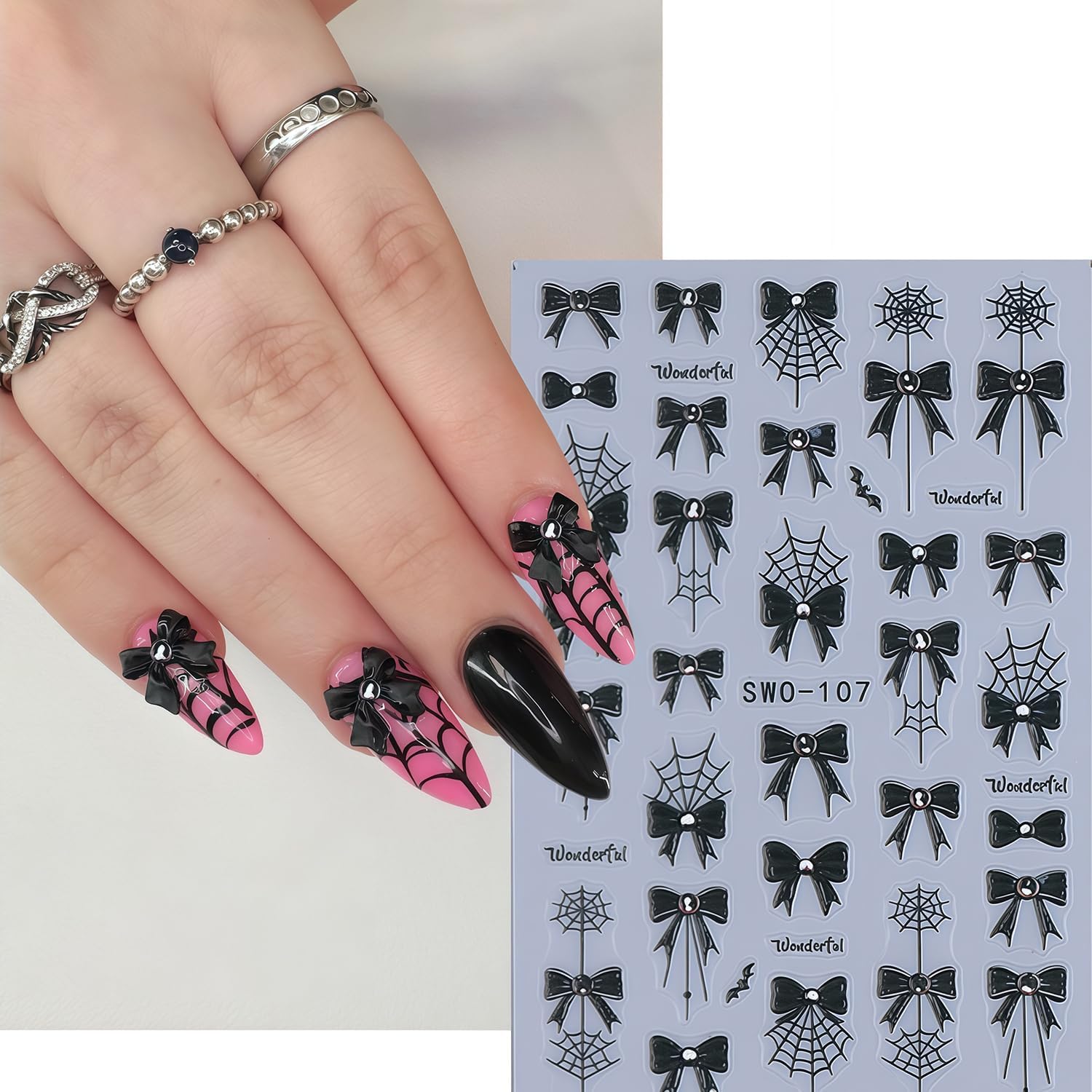 - Quantity: You will get 2 sheets of fall halloween nail art stickers, including spider web and bow pattern designs, not easy to fall off or fade, can easily create a variety of themed nail art, meet the needs of reusable