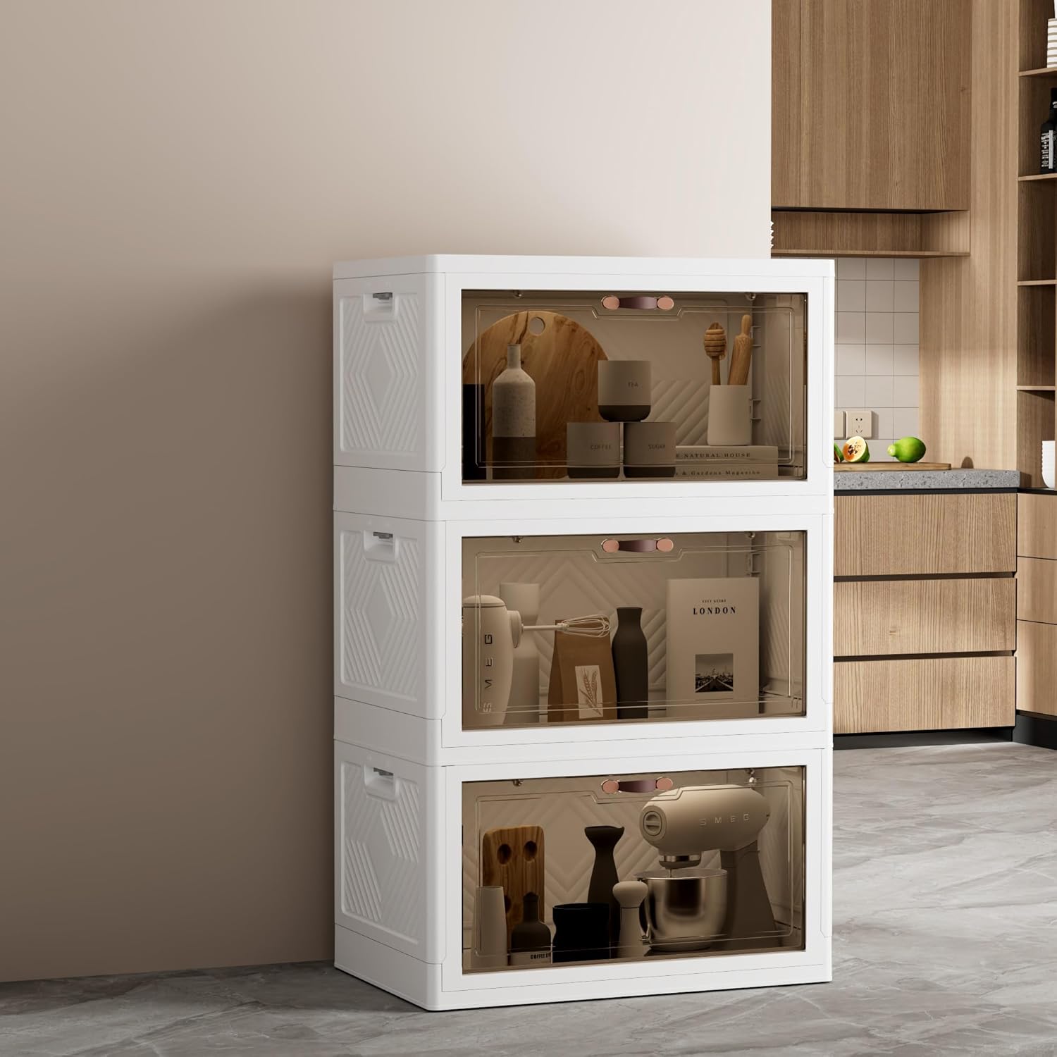 JOYMOOP Folding Storage Bins Organizer, 148.8 Quart Collapsible Storage Boxes with Wheels and Door, Stackble Plastic Storage Container for Clothing, Books and Sundries (XL, 12.4 Gal Per, 3 Tiers)