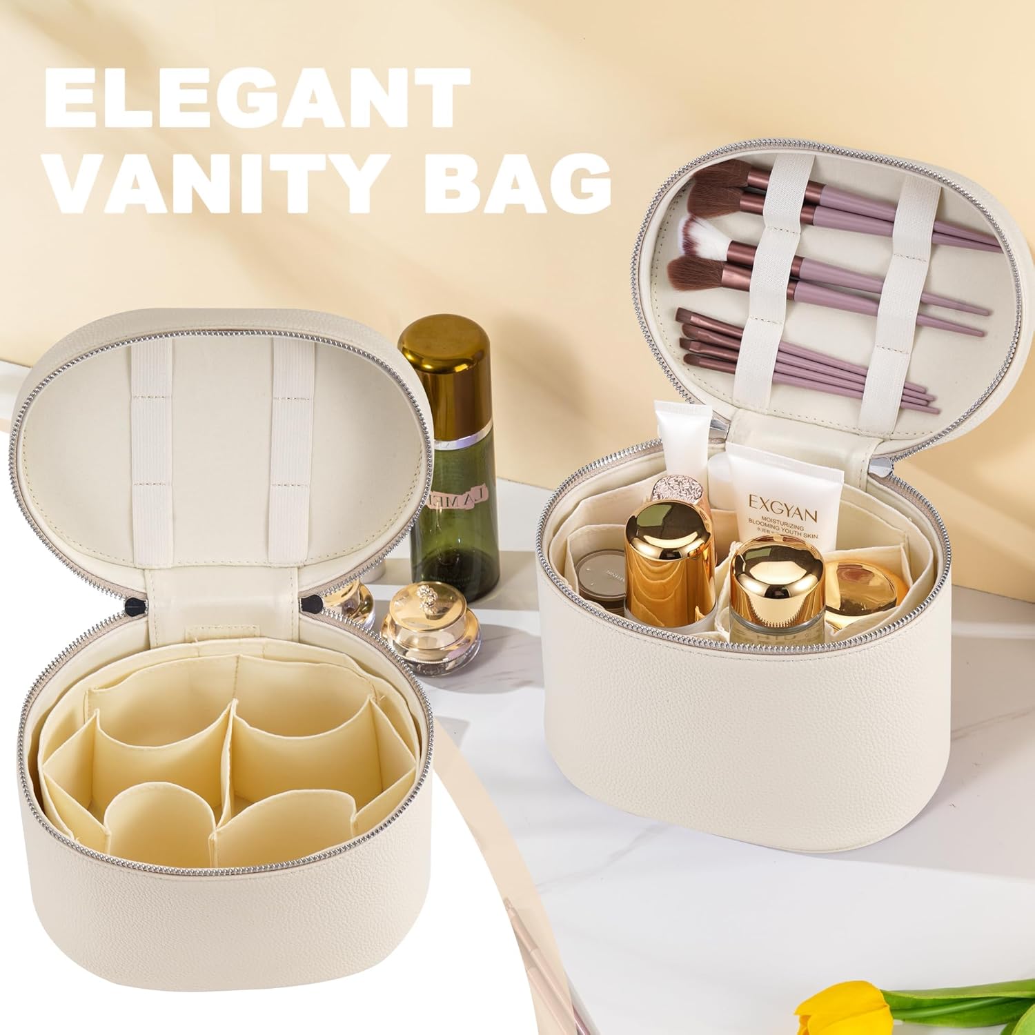 Makeup Bag Vanity Case Cosmetic Bag with Removable Divider Travel Toiletry Bag for Women Portable Make up Box Organizer, Beige