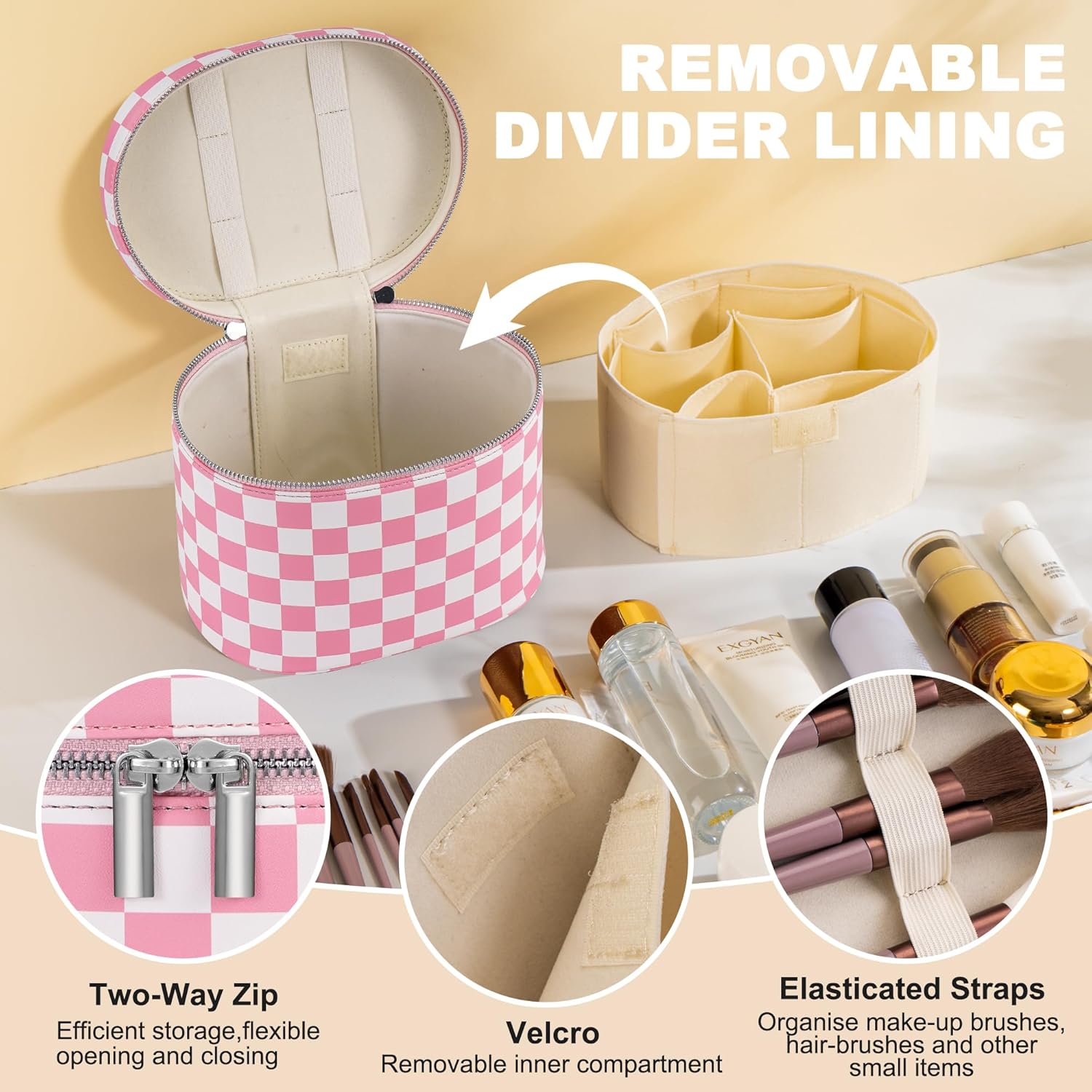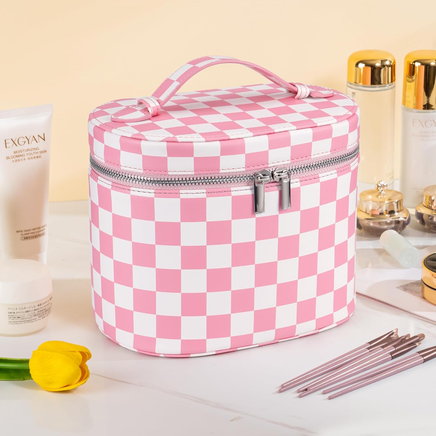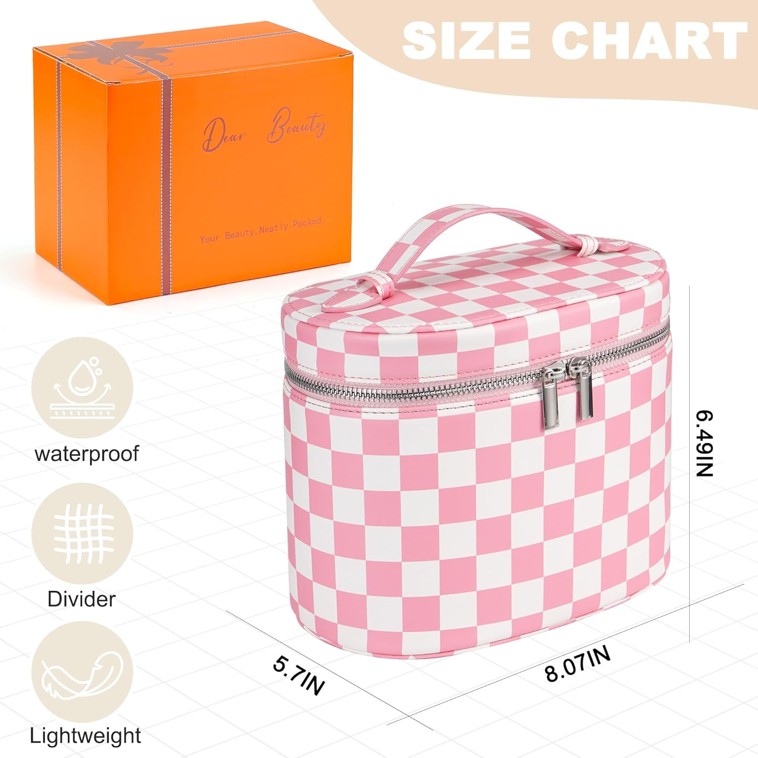 Makeup Bag Vanity Case Cosmetic Bag with Removable Divider Travel Toiletry Bag for Women Portable Make up Box Organizer, Pink and White