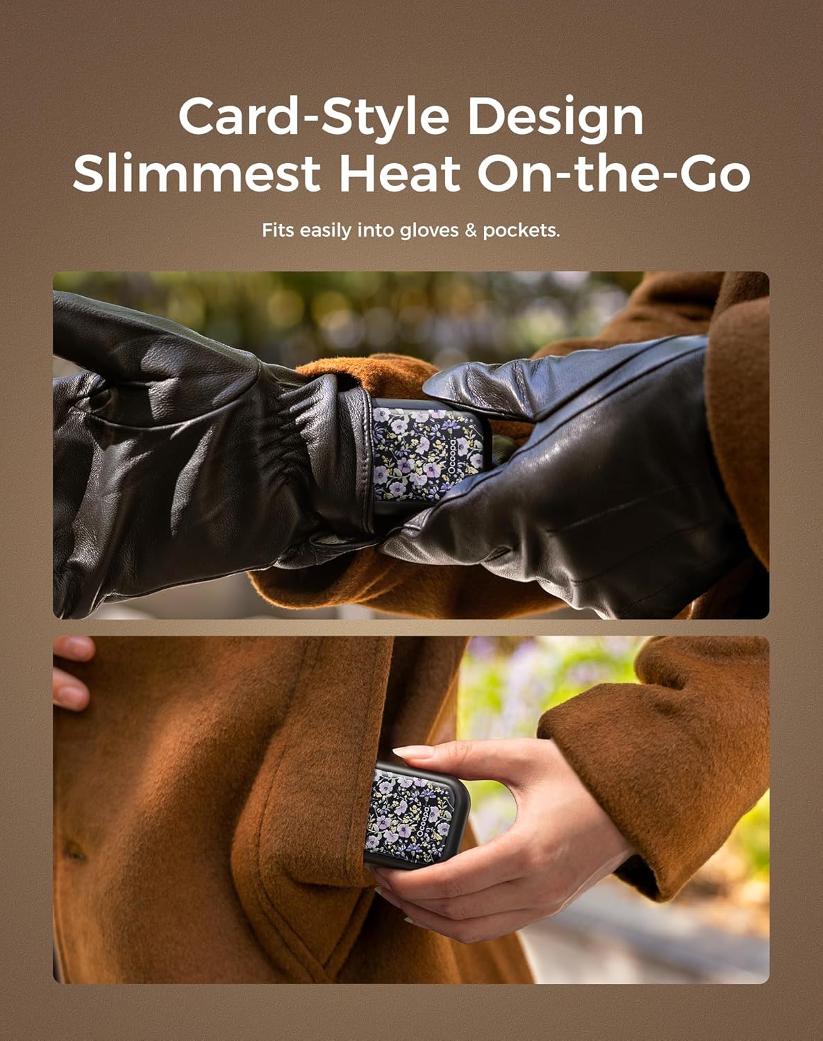 - Ultra-Compact, Card-Style Design: At just 0.6 inches thick and 65 grams, these rechargeable hand warmers fit easily into gloves, pockets, or purses, making them the perfect winter accessories for any outdoor adventure, sleek design enhance you warm gear