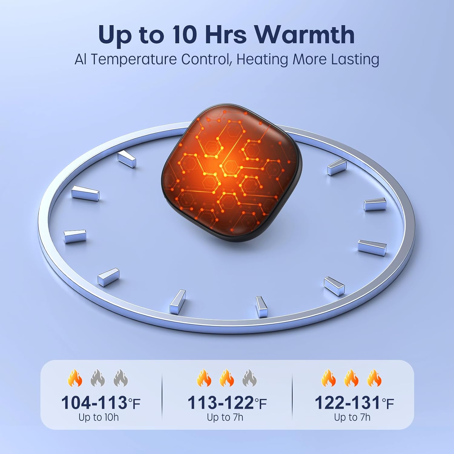 - Instant, long-lasting heat: Experience instant warmth in just seconds! With three adjustable heat levels reaching up to 131°F, this warmer delivers up to 8 hours of continuous heat—ideal for winter activities and soothing conditions like Raynaud’s