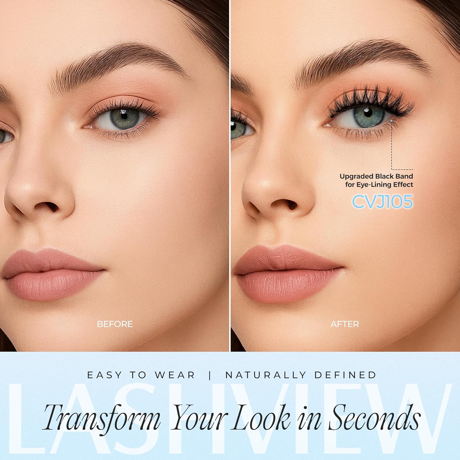 - [Lightweight & Natural Look] Made with soft fibers, LASHVIEW glueless lashes add natural volume and curl. Enjoy a 3D layered effect that feels feather-light on your eyelids
