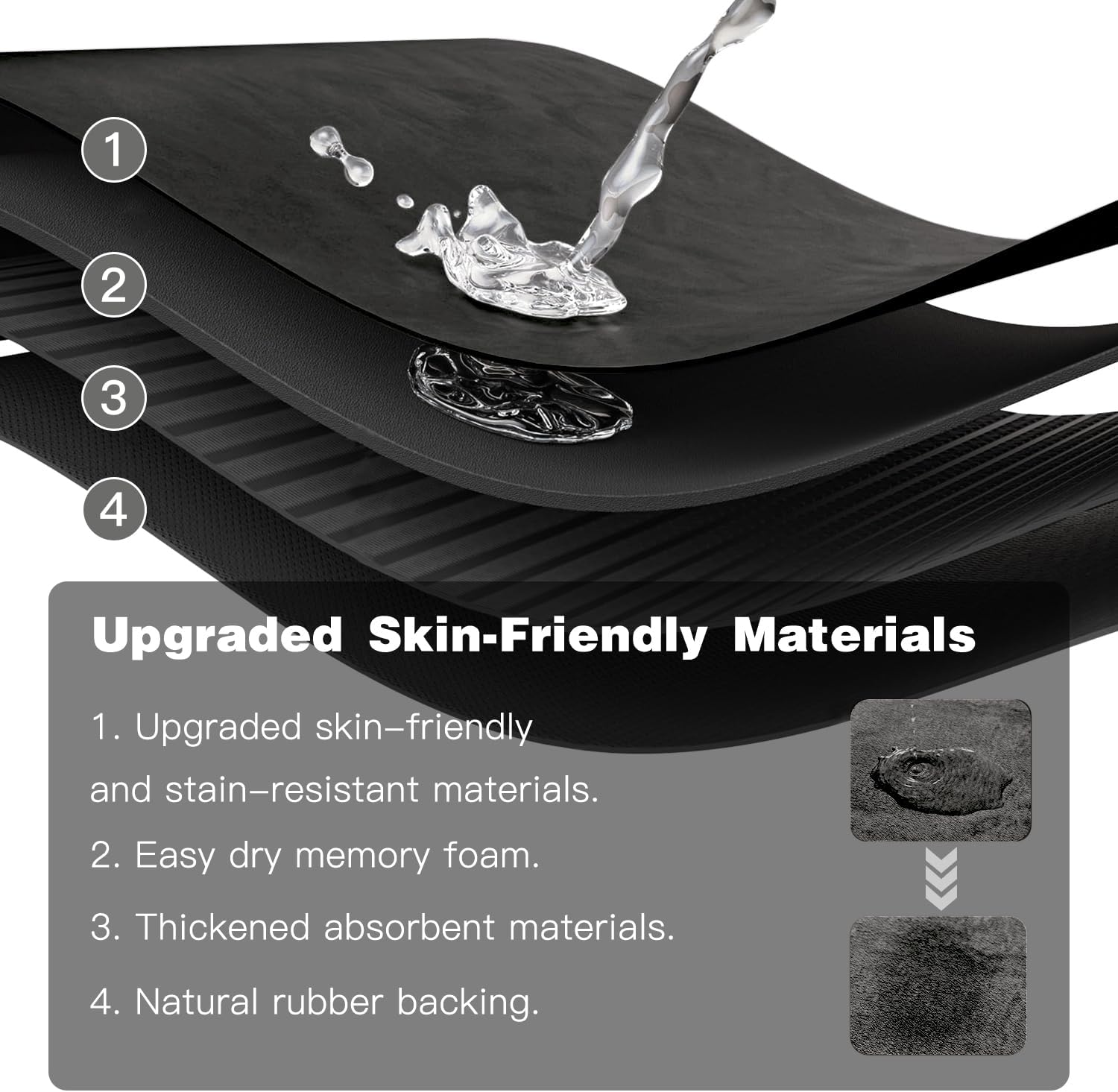 - Indulge in Luxury and Comfort: Our bathroom mat features a sleek, modern design that absorbs water efficiently, even though it's not fluffy. Its thin profile fits under doors easily, making it an ideal choice for small bathrooms with limited space. Step onto our soft, cozy bath mat after your shower and feel the comfort embrace your feet