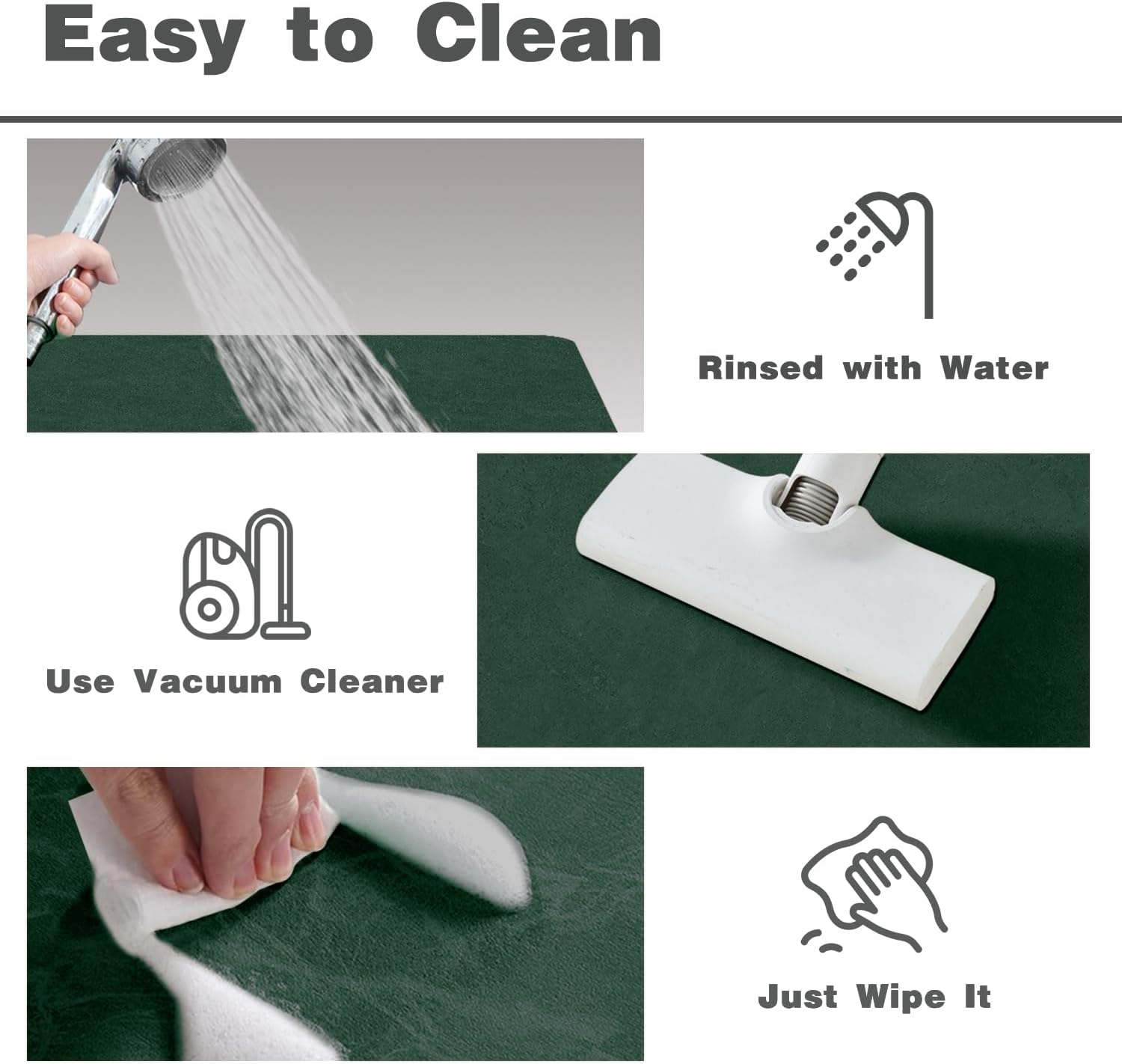 - Easy to Care: Thanks to the hairless new-tech layer, these bathroom mats are easy to clean. Water evaporates quickly, preventing dirt and hair from attaching to the surface. No need machine wash. After long-term use, simply wipe it with a wet cloth, rinse it with a shower nozzle or use vacuum cleaner. And dry it in open air after washing.To ensure it has a long life time, please do not use of dryer or bleach cleaning