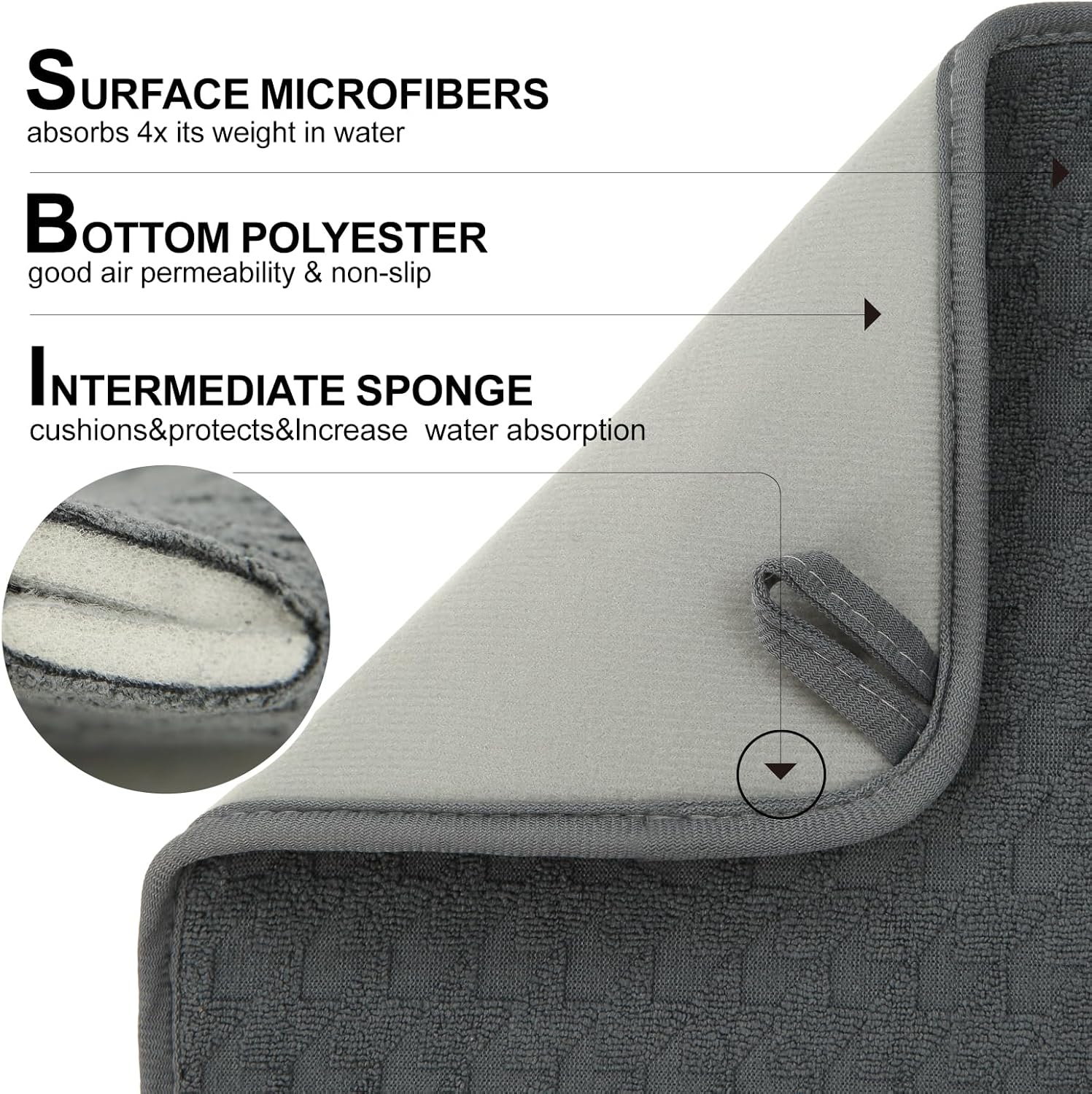 - CLEANING & STORAGE:The middle layer material of this countertop drying pad is sponge,machine washing is not recommended, hand washing is best, just wash once a week and hang to dry after use. Can be folded and stored in the cabinet to save space.