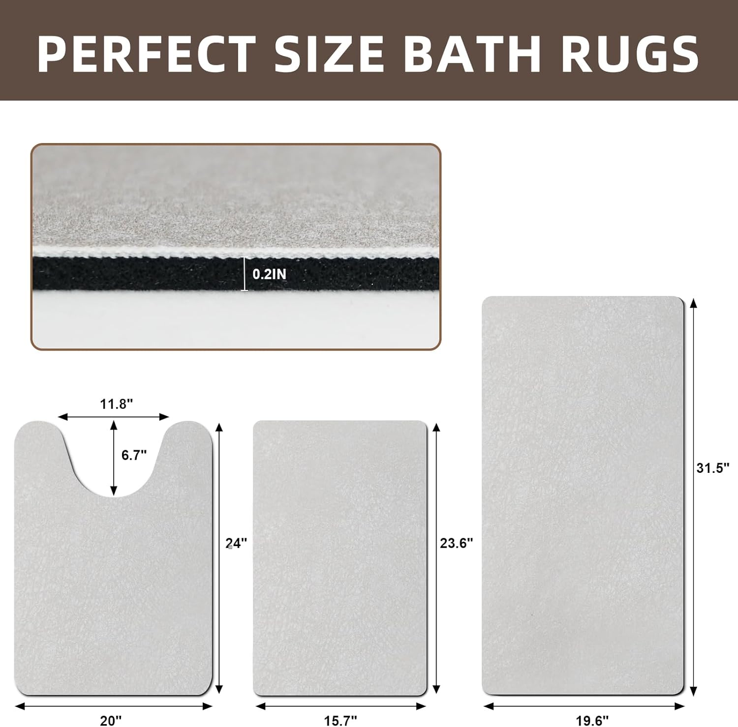 Diatomaceous earth bath mat Bathroom Rugs Sets 3 Piece Super Absorbent Quick Dry Bath Mats, Rubber Non Slip Shower Mat and Toilet Mat U Shape, Shower Rug for in Front of Bathtub Shower, Grey