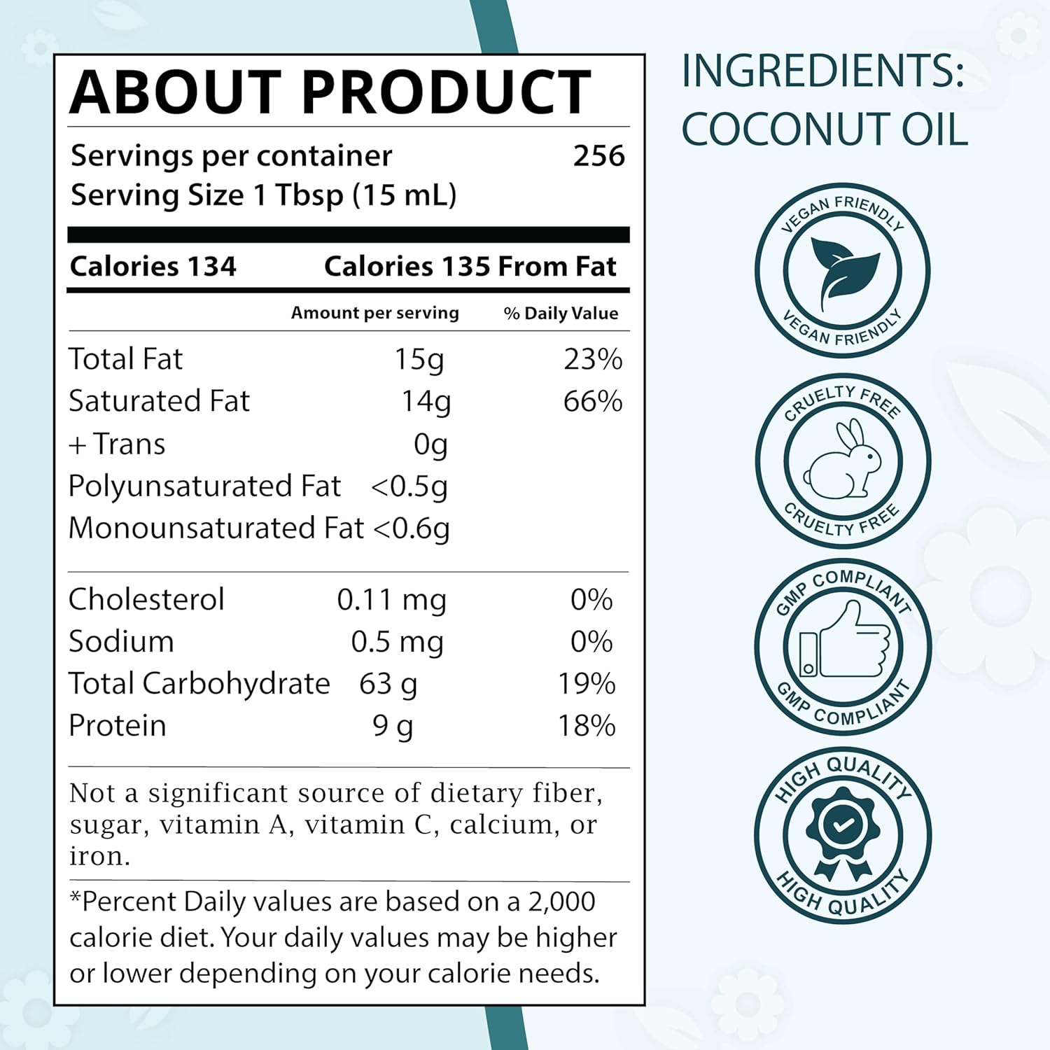 - GENEROUS SIZE: 8-pound, roughly 1 gallon, container provides an ample supply for both culinary and personal care applications