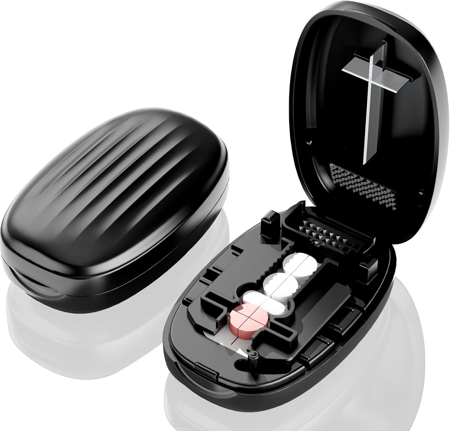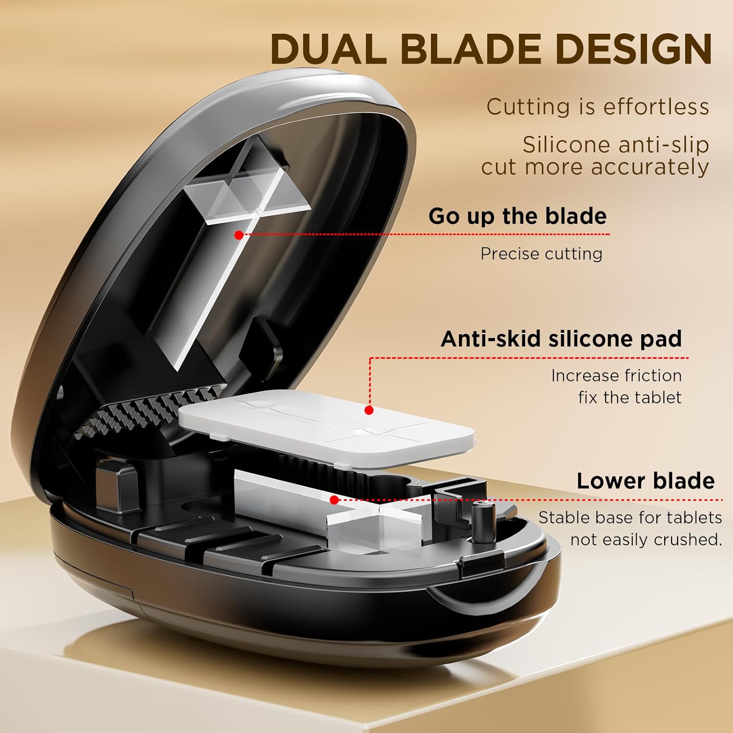 - 【STAINLESS STEEL BLADE】: Precision-crafted stainless steel blade delivers clean, accurate splits every time. Durable and reliable for consistent medication dosing, making pill cutting easy and effective with long-lasting performance